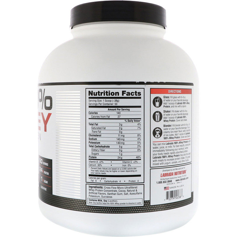 100% сывороточный протеин Labrada идеально подходит для спортсменов, любителей фитнеса, бодибилдеров и людей, сидящих на диете, которые хотят дополнить свое питание чистейшим и высококачественным белком.