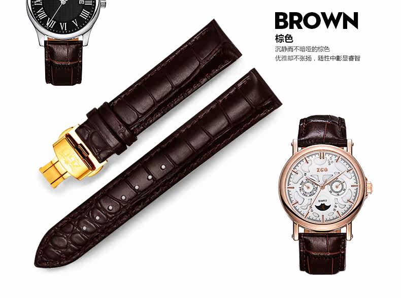 正港 Ремешок для часов, ремень, аксессуар, крокодиловый принт, из натуральной кожи, 20мм