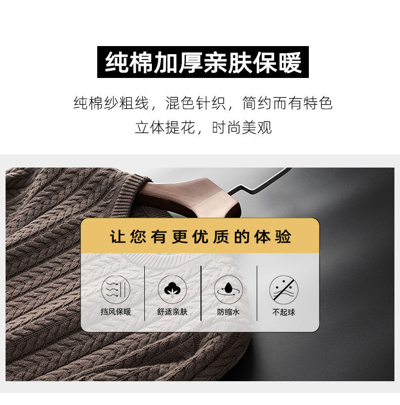 Зимний удерживающий тепло хлопковый трикотажный ретро свитер с круглым воротником, увеличенная толщина, в корейском стиле