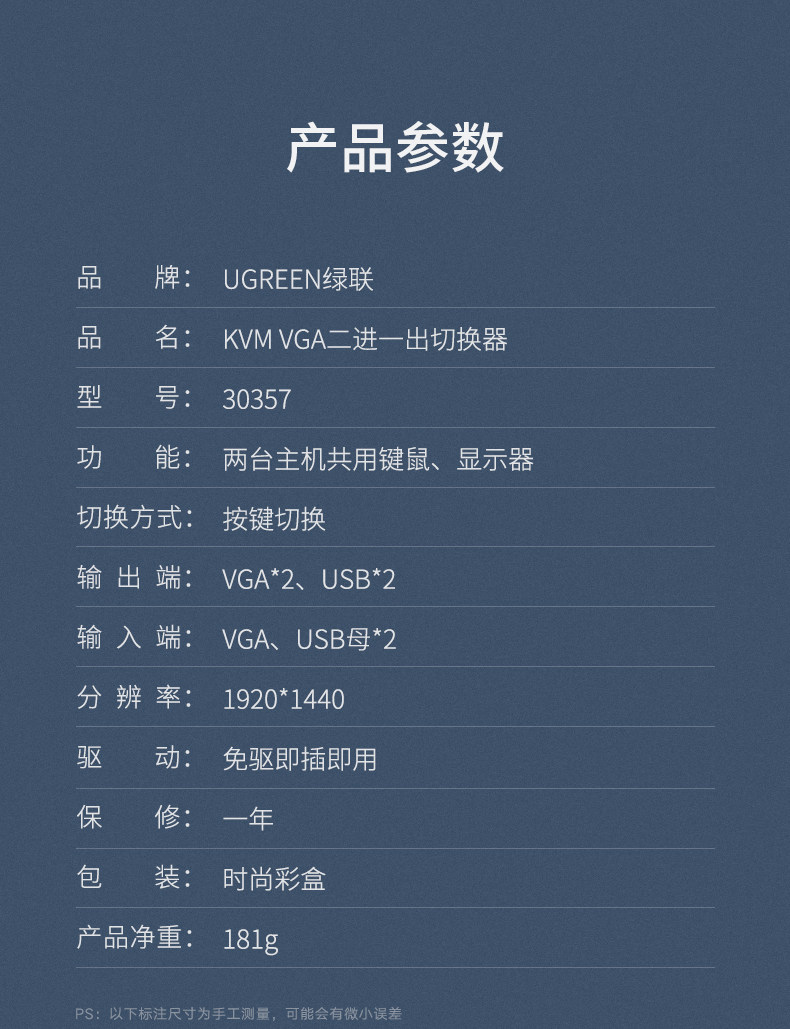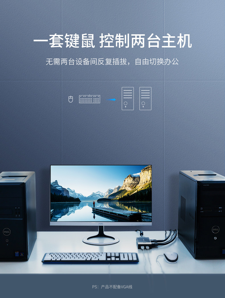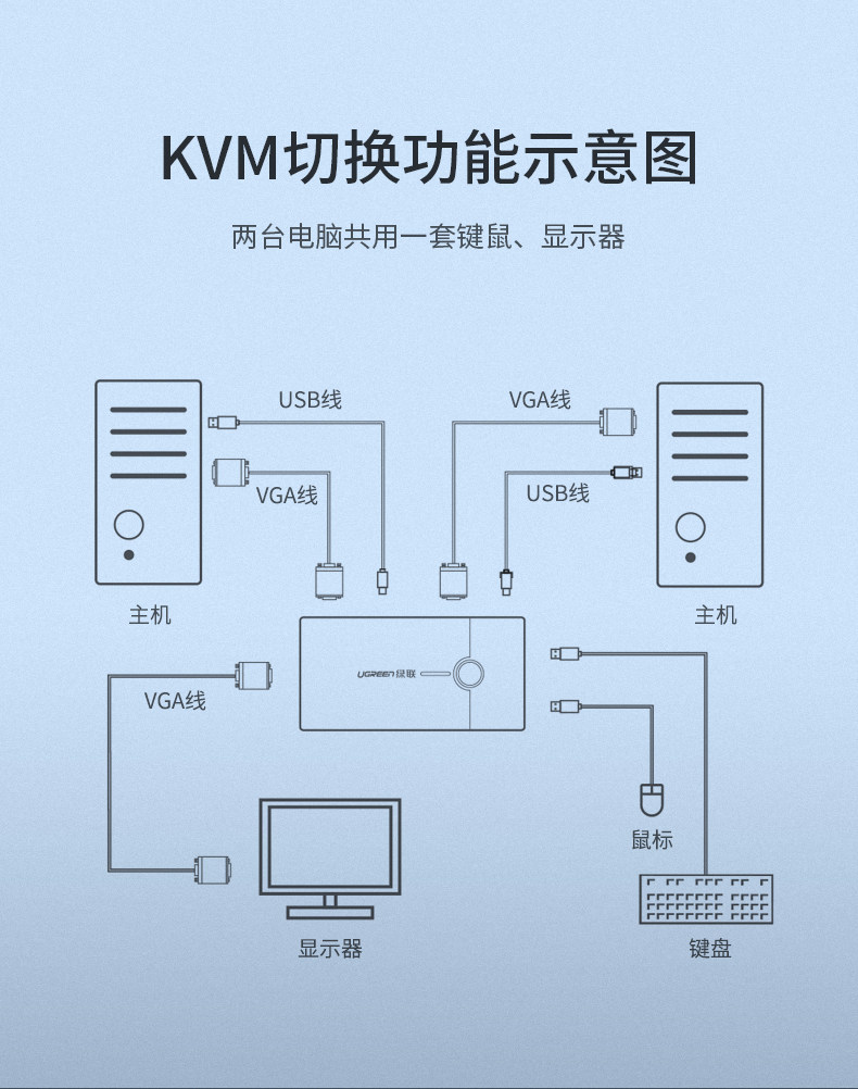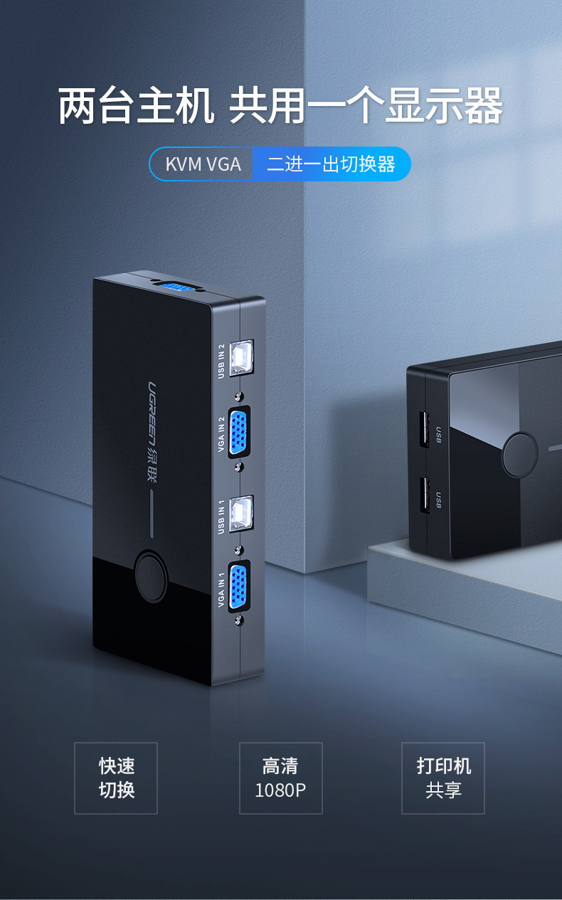 绿联 KVM Switch VGA Два двойного хоста, поделившись экраном дисплея, обмен USB -клавишные мыши преобразование экрана. Один перетаскивание, две точки, две точки, два -один -один раз