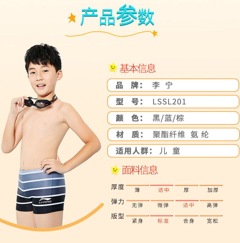 Li Ning, детские модные штаны для плавания, шорты для мальчиков, детский купальник, плавательный аксессуар