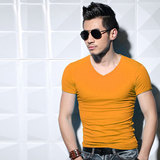 Крутая мужская футболка с короткими рукавами и v-образным вырезом, летняя тонкая мужская футболка с половиной рукавов, однотонные хлопковые колготки из модала, tx