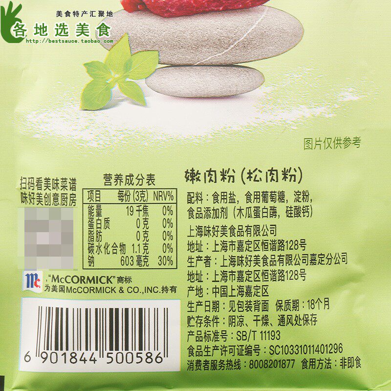 Измеритель ингредиентов: съедобная соль, глюкоза, крахмал, пищевые добавки (протеаза папайи, силикат кальция) и т. Д., Основана на фактической информации об исключительной упаковке продукта.