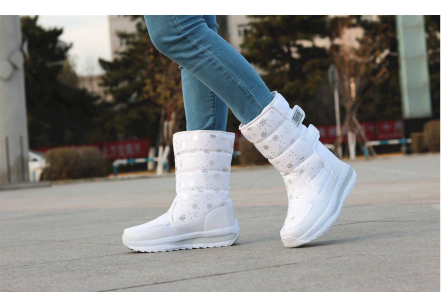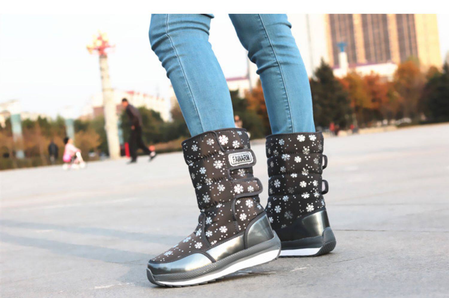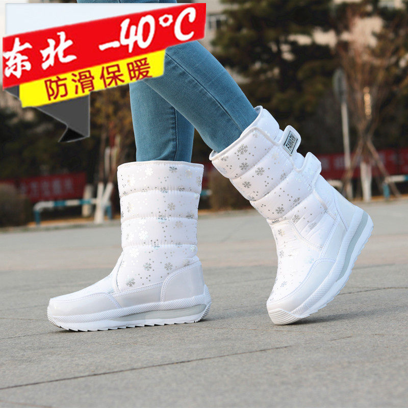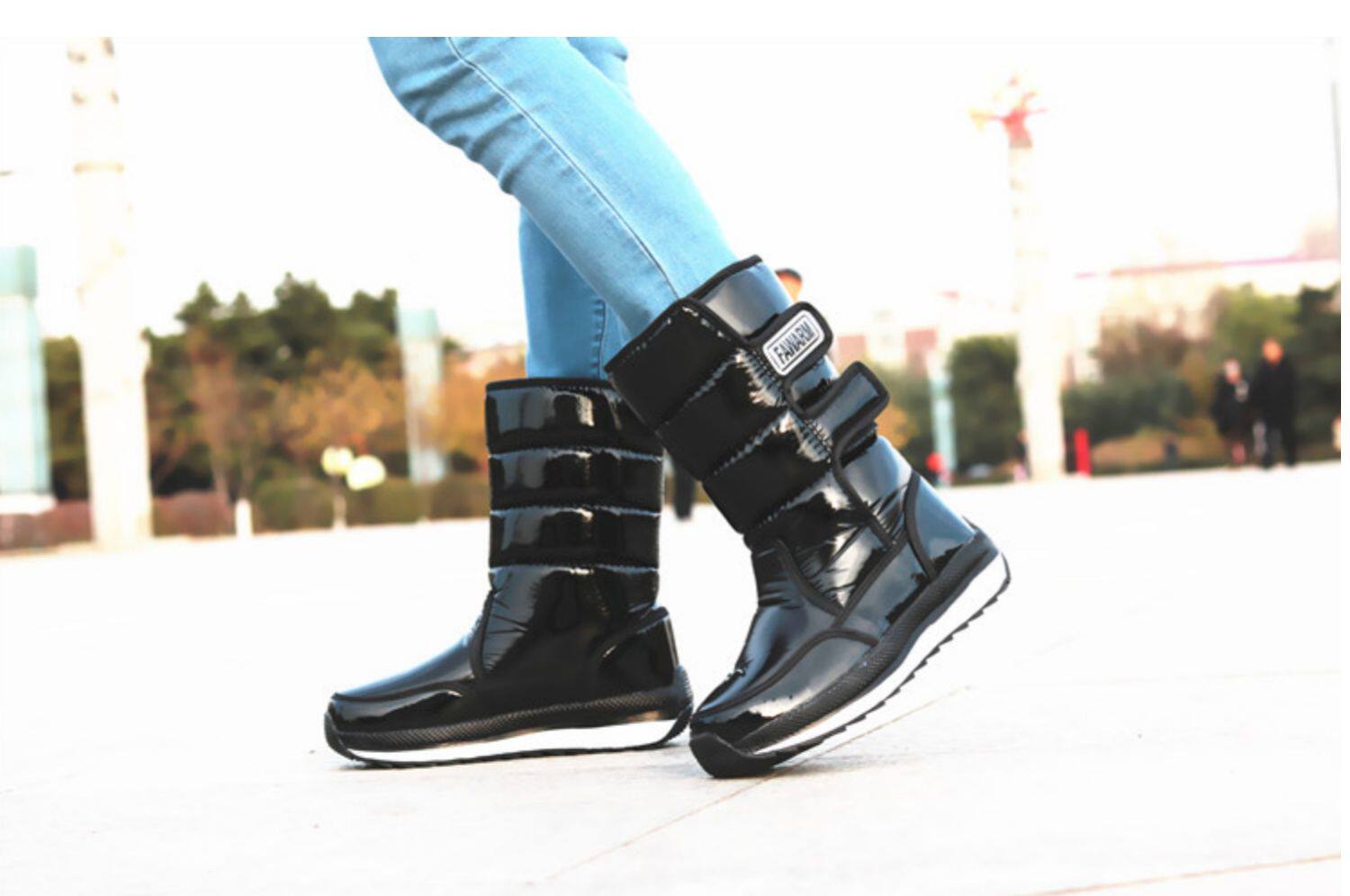 Зимняя корейская версия снежных ботинок женские средние трубы сгущенные хлопчатобумажные сапоги теплые и лыжные водонепроницаемые туфли на открытом воздухе.