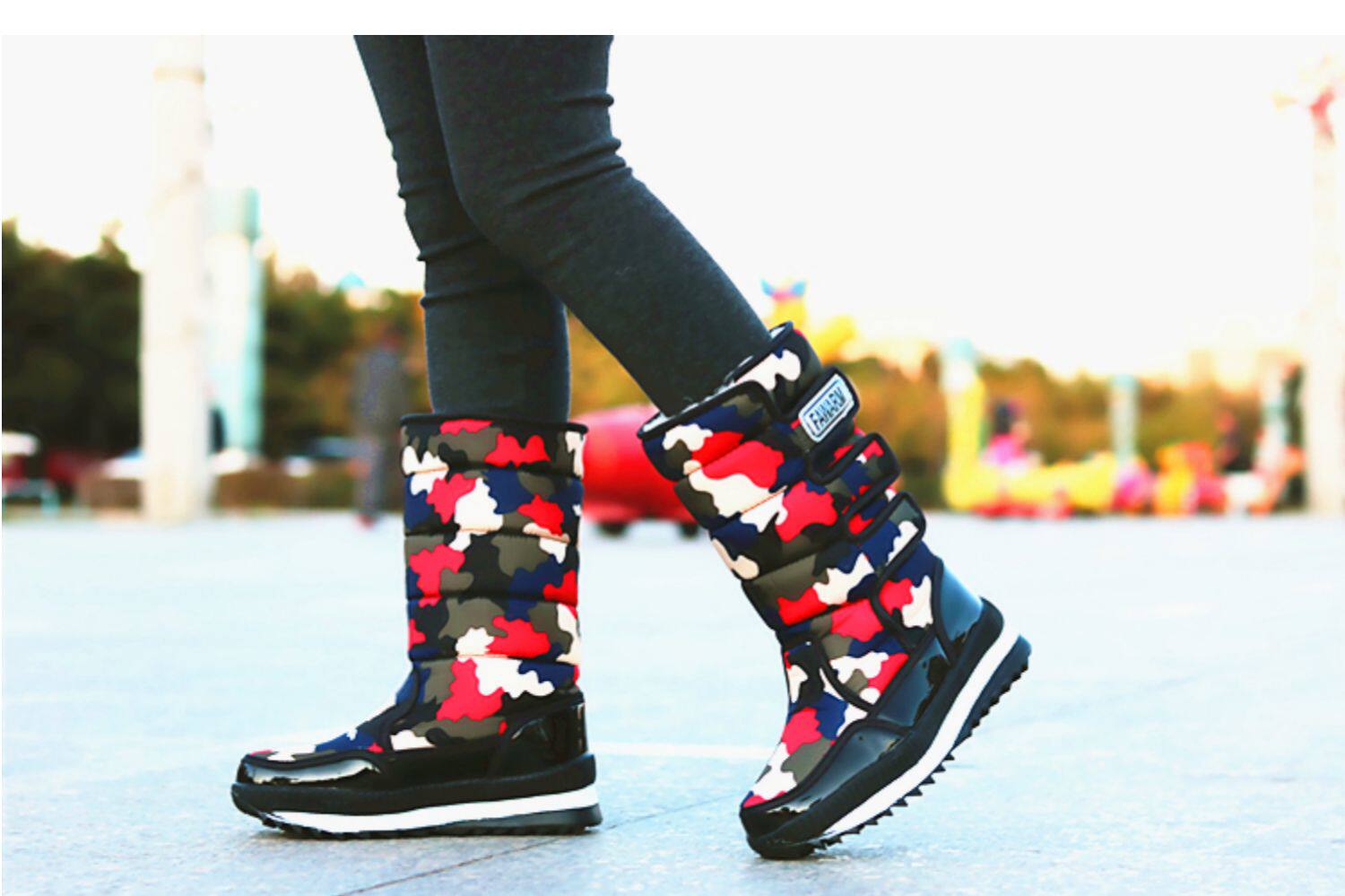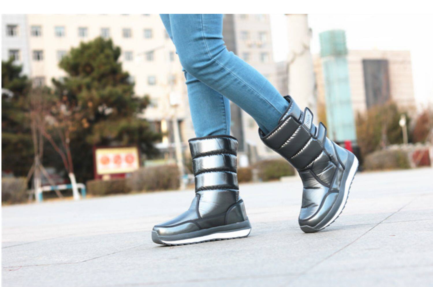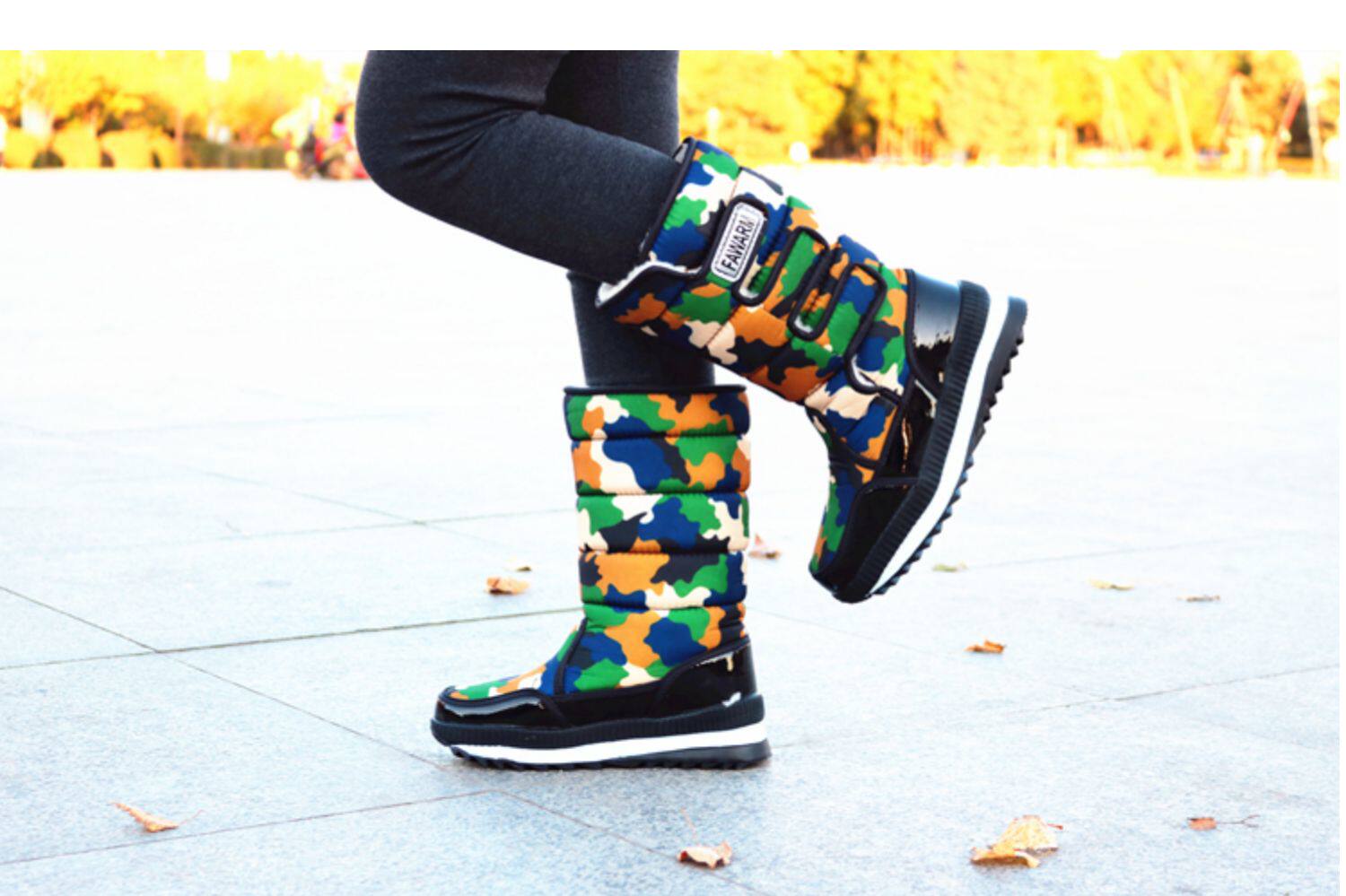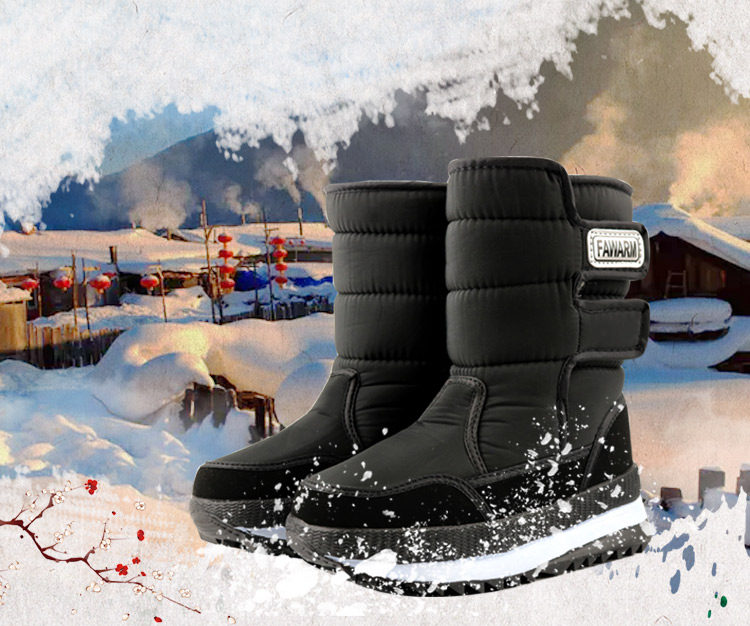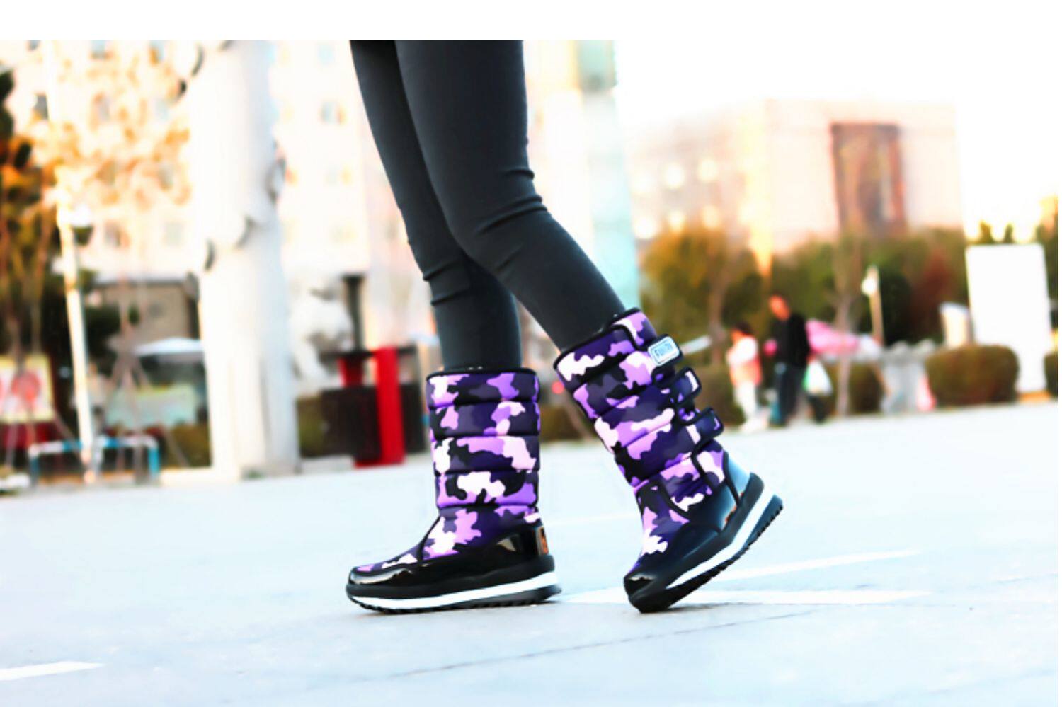 Зимняя корейская версия снежных ботинок женские средние трубы сгущенные хлопчатобумажные сапоги теплые и лыжные водонепроницаемые туфли на открытом воздухе.