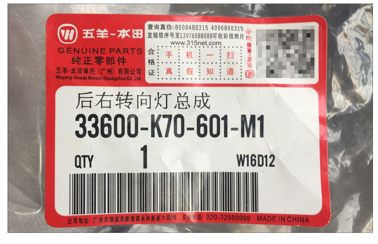 Продавец:玲珑机车五羊本田新大洲本田原装配件