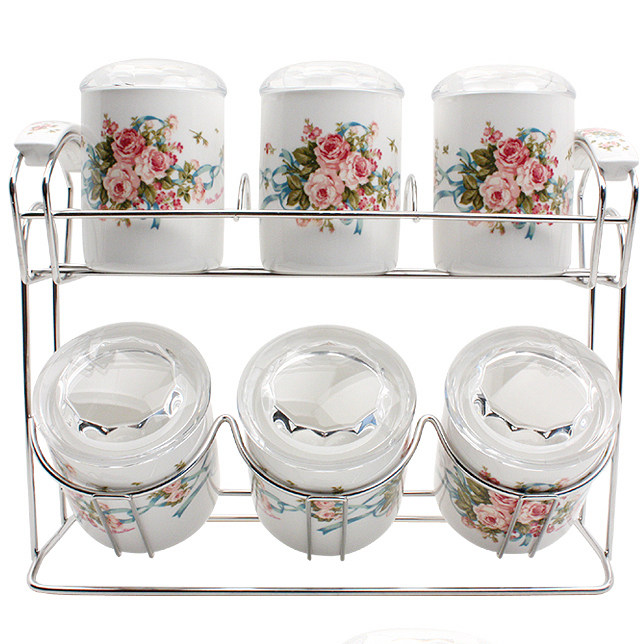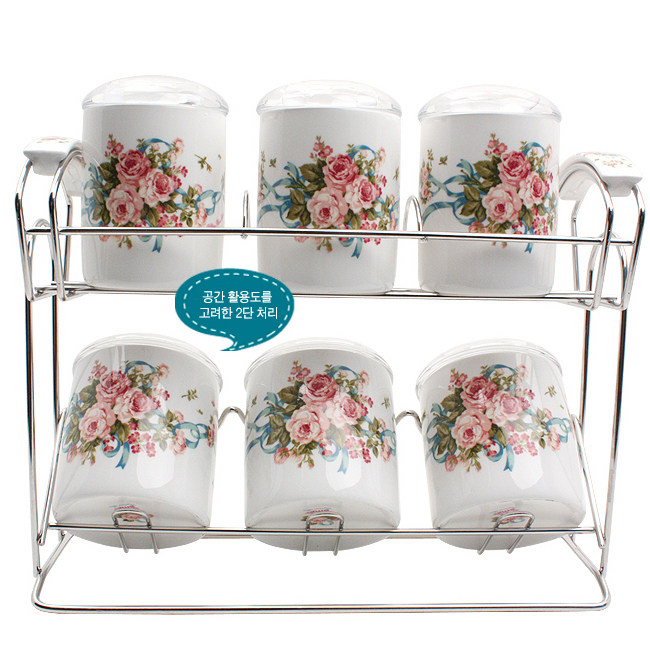 Южная Корея импортировала SMF England Rose Ceramic приправляющий резервуар для уплотнения резервуара из нержавеющей стали 6p Set Set