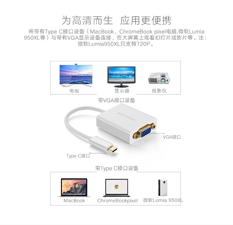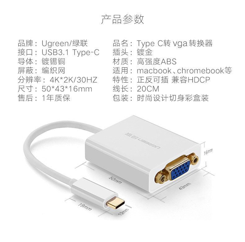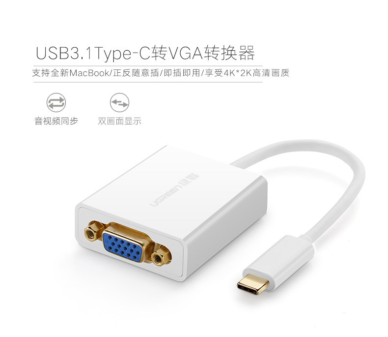 绿联 Typec to VGA Converter подходит для Apple Huawei Samsung S10Note Мобильный телефон iPad Pro 同 同 同 同/P30 TV Projection Projection Computer MacBookPro Rotor