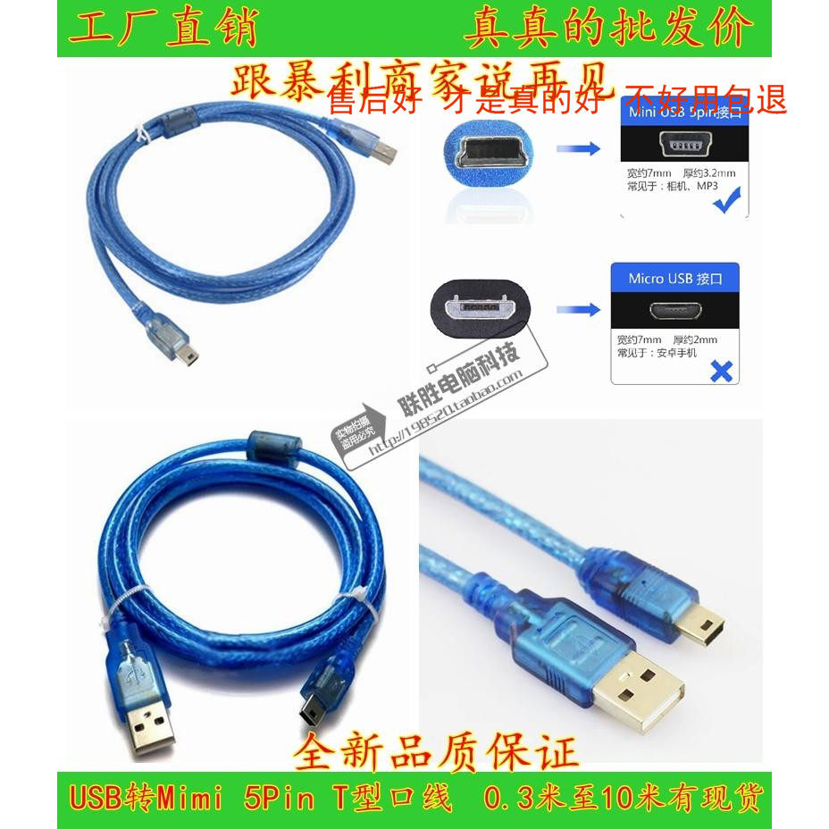 USB-5PT HEAD T-TYPE MINI MINI MINI DATA CABLE MP3/MP4 Рекордер 1,5 м3 метра-10 метров