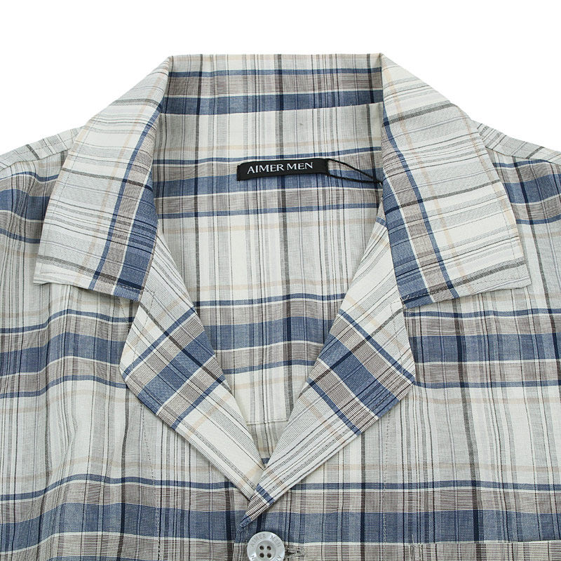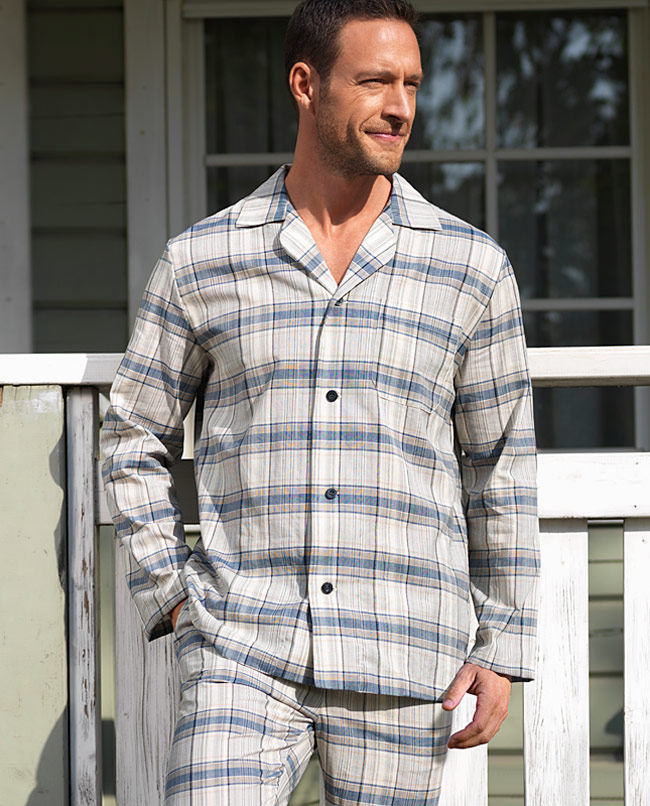 Мистер Almire Mran Men's Long -Sleeed Home Clothing Cotton Проверенная решетчатая линия лава -пряжка верхняя пижама 41C35
