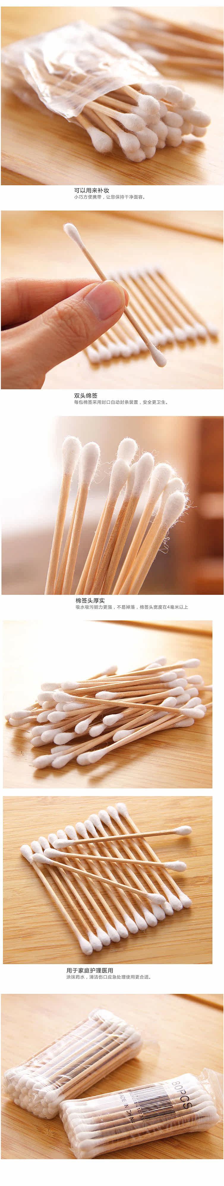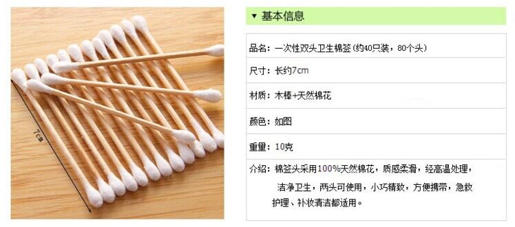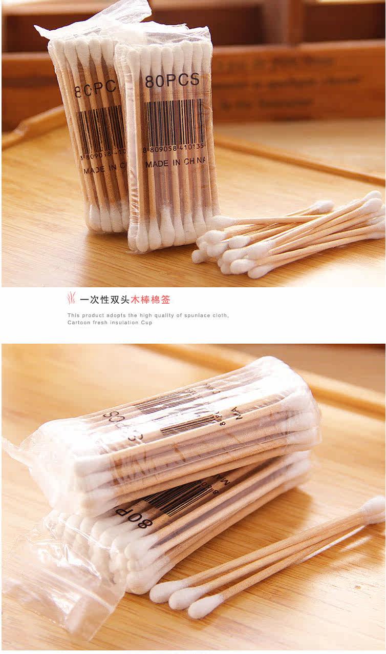 Двусторонние одноразовые антибактериальные косметические ватные палочки, хлопковые ватные диски