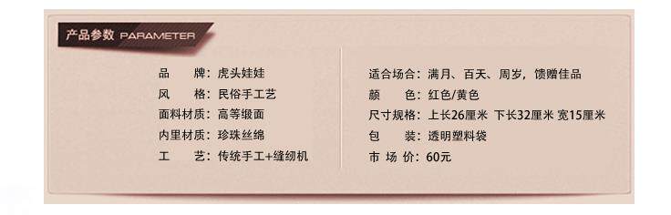 Подушка головы тигров - одна из традиционных китайских ручной работы, значение подушки тигровой головы,“тигр”Как король зверей, это талисман, которого обычно уважают, Династия ХанУ двери есть рисование тигров, и есть обычай изгнания злых духов.Взрослые часто делают существа, которые дети делают с тиграми. Помимо изгнания злых духов, они также имеют значение благословения детей и долгой жизни.