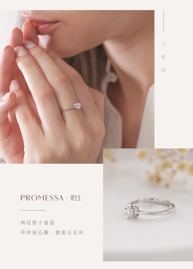 Сяохонгу интернет -знаменитость Чжоу Шенгшенг Преймесса Маленькая Коронный Принцесса Платиновый бриллиант Кольцо 35300R