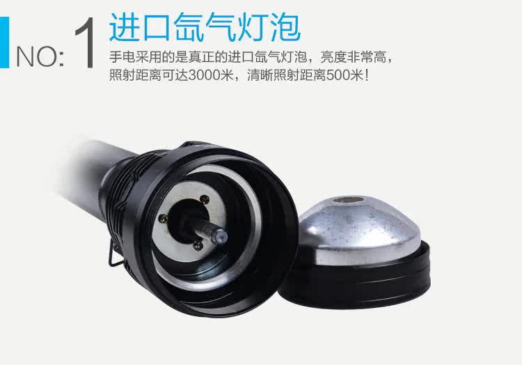 Яркость HID фонарика в три раза превышает яркость обычных автомобильных фаров, 3000 метров расстояния освещения