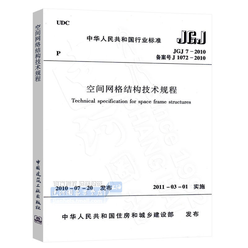 Формы, вычислительные модели, анализ стабильности и землетрясения, требования к проектированию и структуре различных типов узлов, а также производственные требования, производство, установка и интервью.Это регулирование одобрено и выдано Министерством жилищного строительства и городской ирральной развития № 700, и оно будет реализовано 1 марта 2011 года.Первоначальные отраслевые стандарты «Структура структуры и строительство» JGJ7-91 и «Технические правила на травяной оболочке» JGJ61-2003 были отменены одновременно.