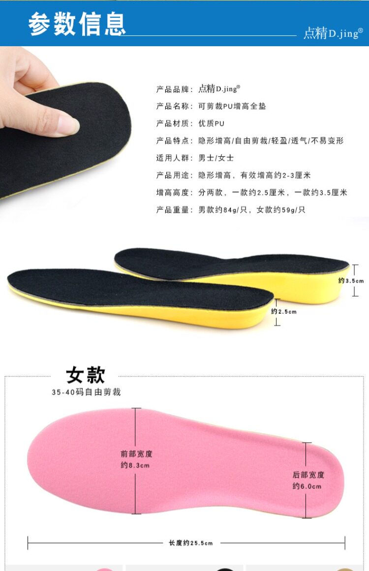 Невидимые мягкие амортизирующие полиуретановые стельки для увеличения роста подходит для мужчин и женщин