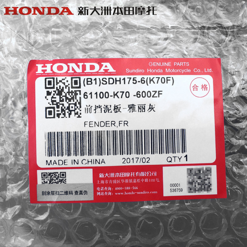 Новый континент Honda CBF190R Передняя грязная передняя грязная плитка CBF190 Передняя плитка водяной щит (оригинальный аутентичный)