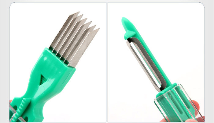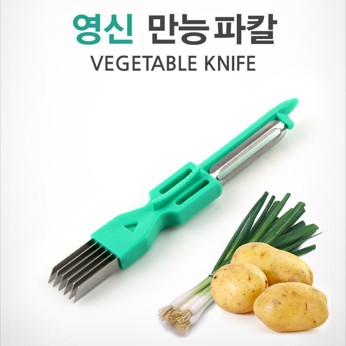 Зеленый лук разрежьте с одной стороны, а с другой очистите ножом. Один нож можно использовать для многих целей.