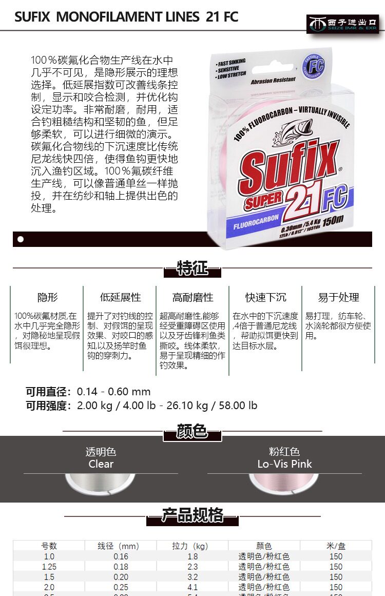 Оригинальная импортная Sufix Slutin Super 21FC углеродная линия углеродная фторида углеродной линии 150 м дорога Азиатская рыба Линия