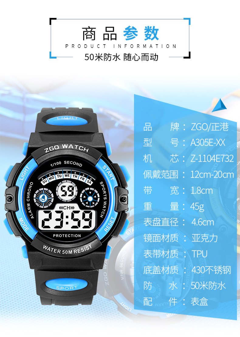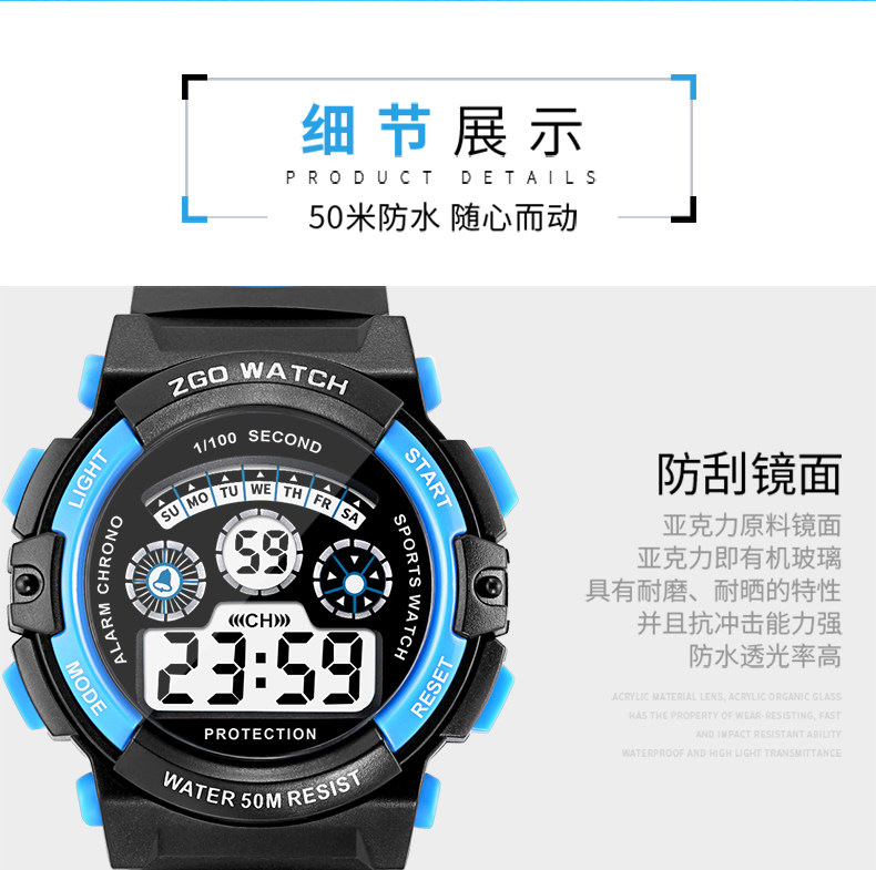 Универсальные детские часы для мальчиков, мужские часы, водонепроницаемые цифровые часы, 12 лет