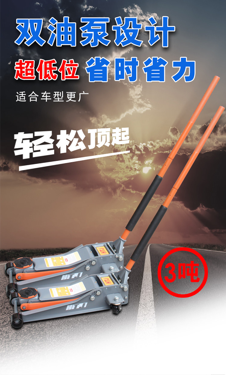 Сверхтолстый удлиненный горизонтальный домкрат, сверхнизкий домкрат, утолщенный гидравлический двухнасосный домкрат 3T для ремонтной мастерской.