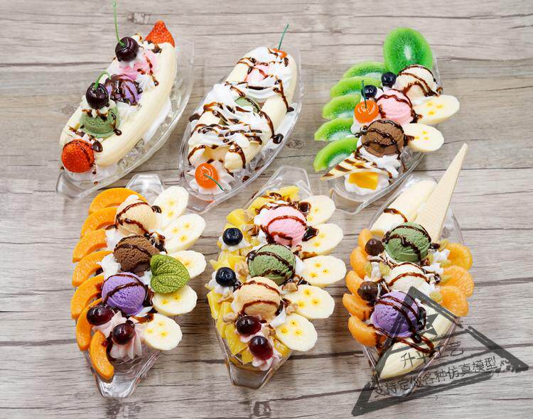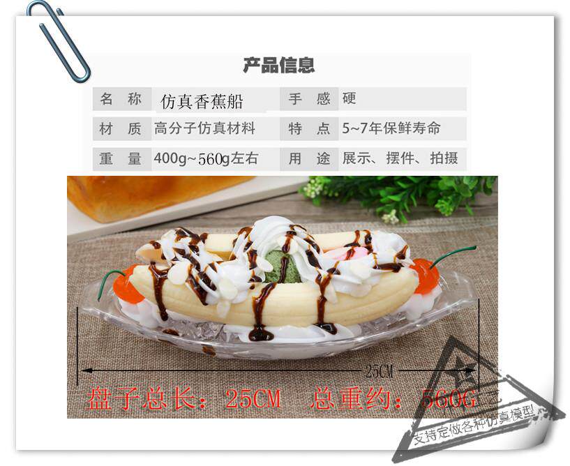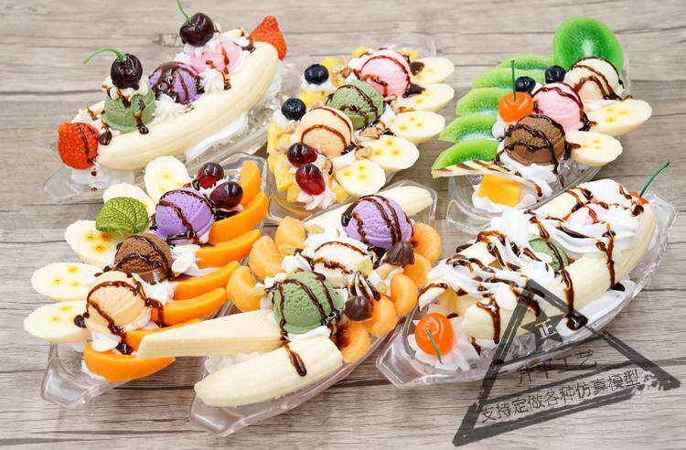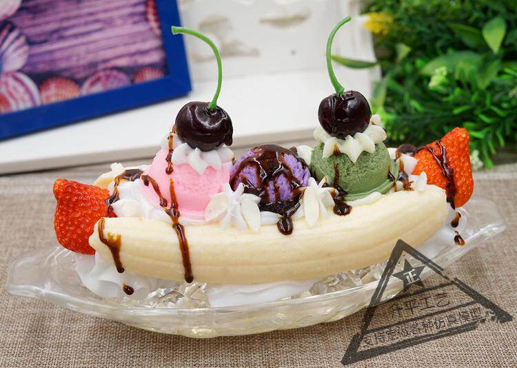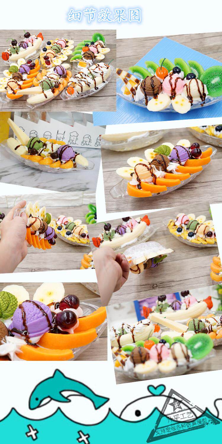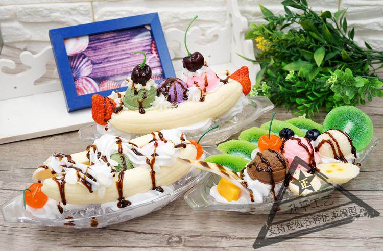 Имитация банановой лодки, десертная модель, витрина, искусственный фруктовый крем, банановый шарик для мороженого, реквизит, бесплатная доставка