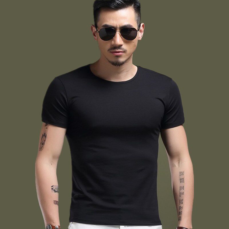- С круглым воротником, черный, короткий рукав, 240 грамм