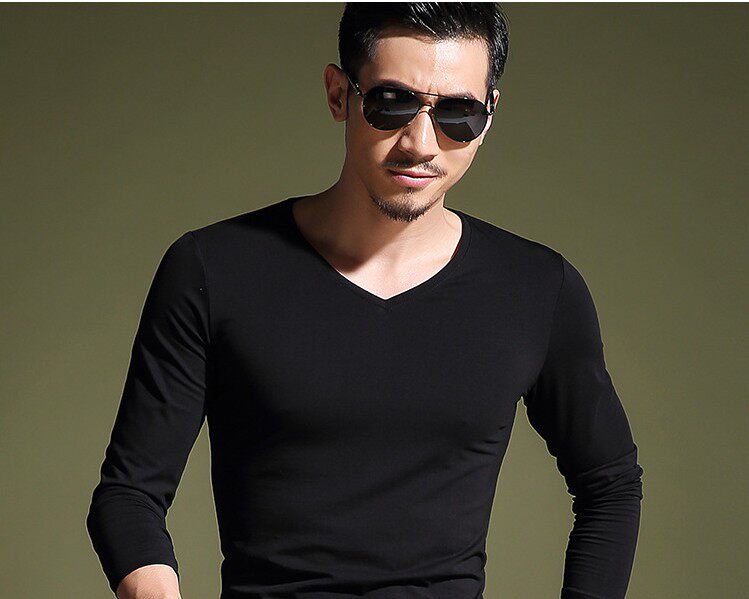 - Черный лонгслив, V-образный вырез, 240 грамм