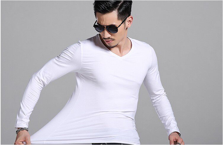 - Белый лонгслив, V-образный вырез, 240 грамм
