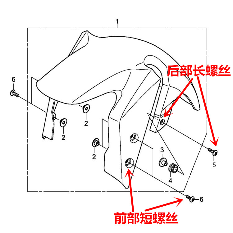 | Цвет: | Винт M6*18 (Винт № 6 на рисунке), Винт M6*22 (винт № 5 на рисунке), Впереди грязевой площадки (№ 2 на рисунке 2) |
