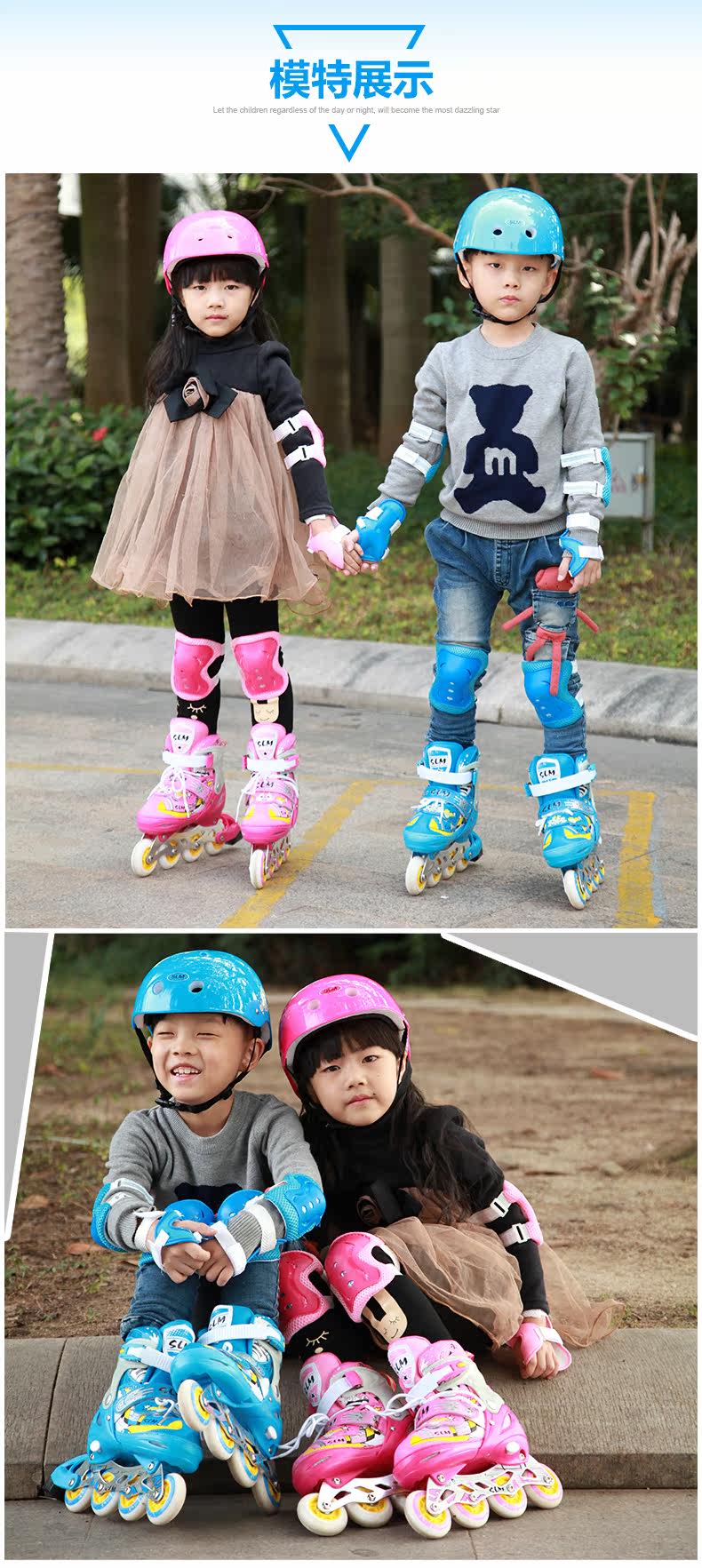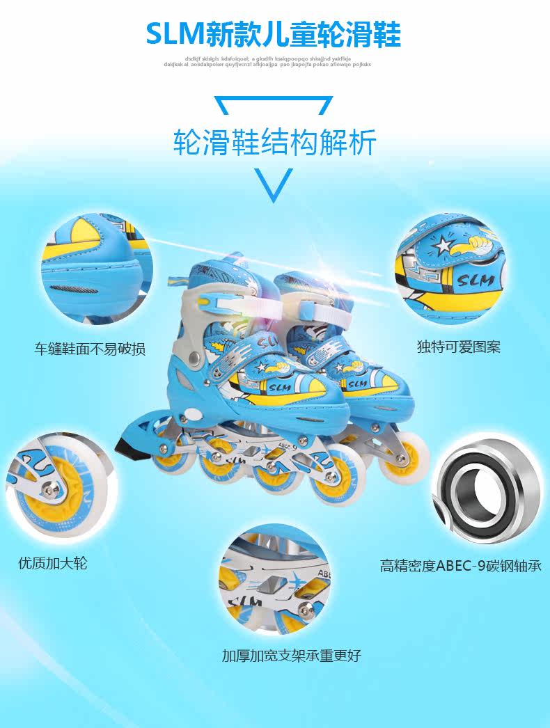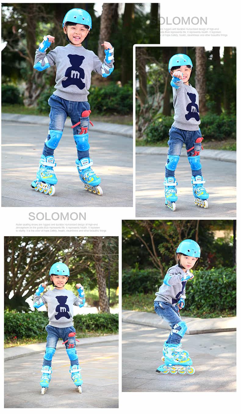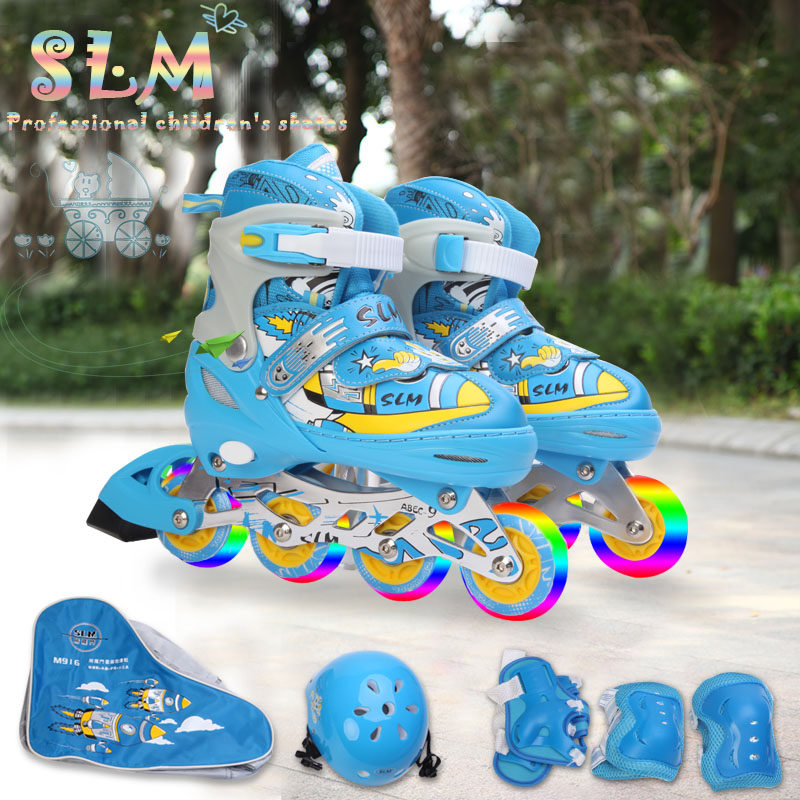 SLM Детский комплект, мигающие детские роликовые коньки подходит для мужчин и женщин, полный комплект