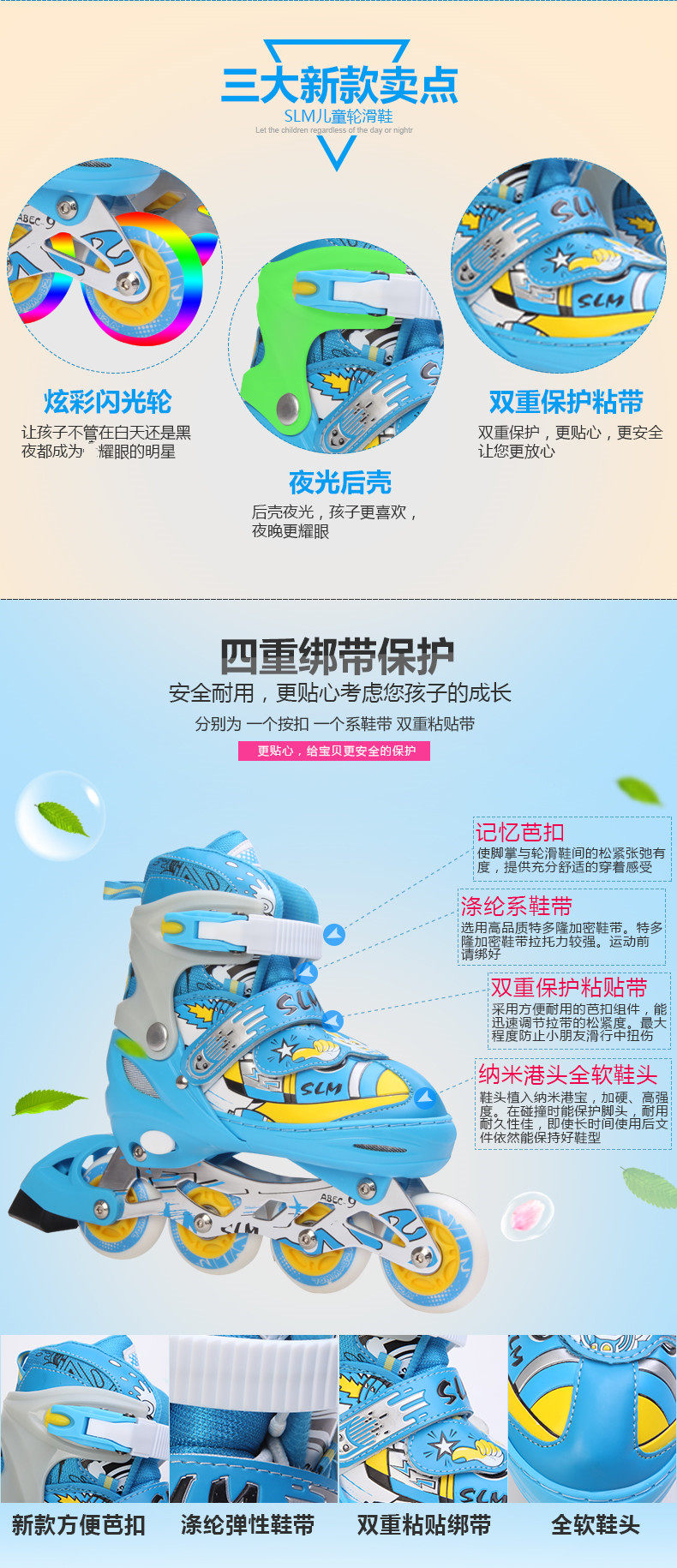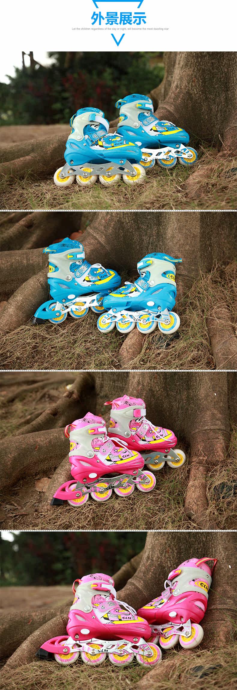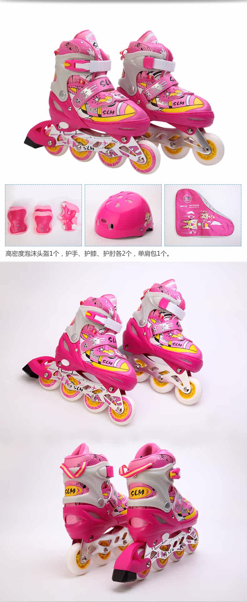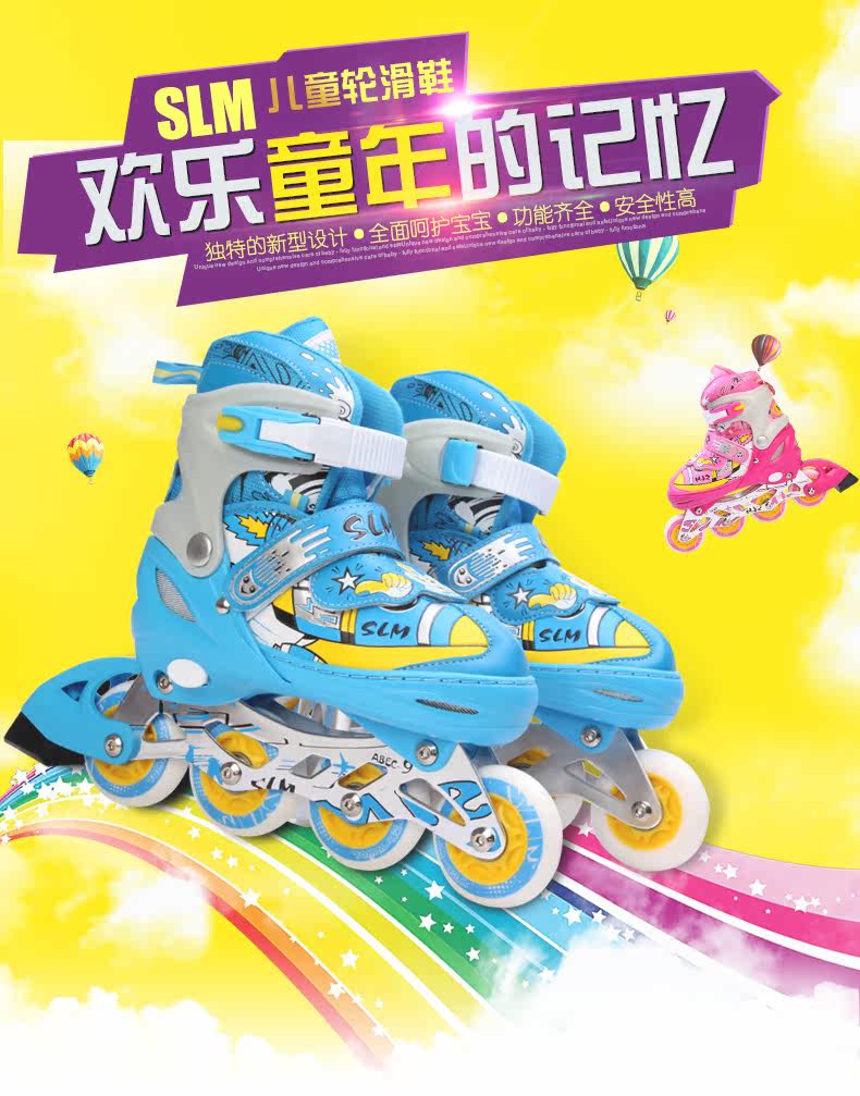 SLM Детский комплект, мигающие детские роликовые коньки подходит для мужчин и женщин, полный комплект