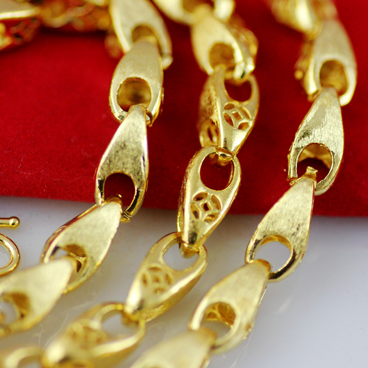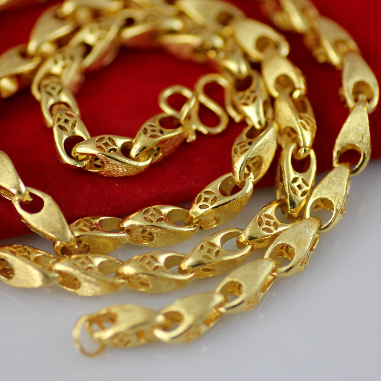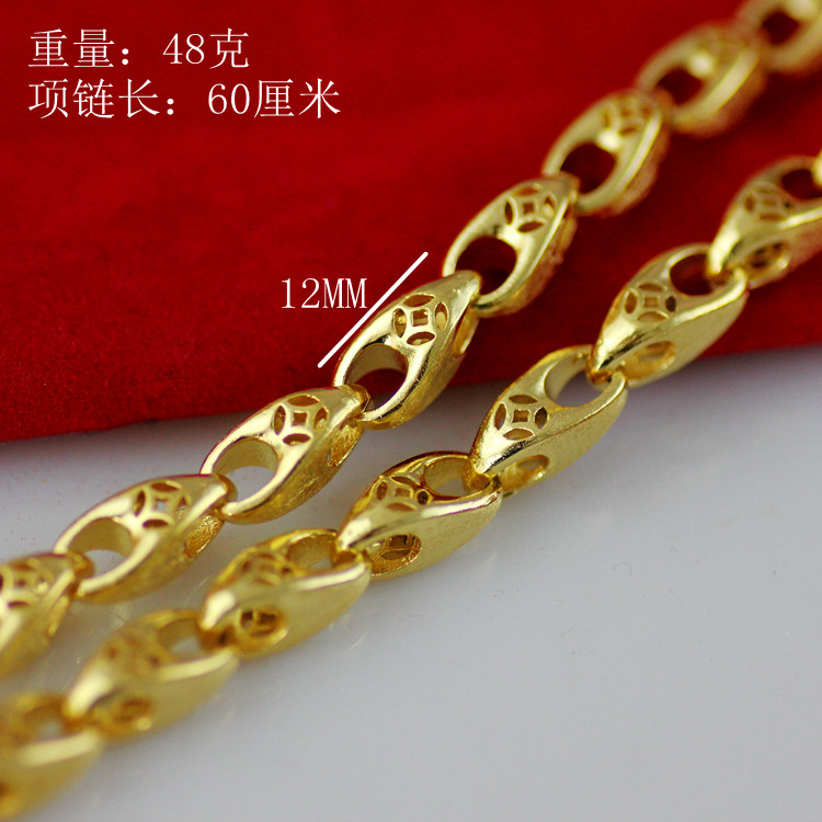 D123 Золото, доминирующие мужское медное медное ожерелье, полые капли из золотой монеты песчаной золотой монеты на долгое время без исчезновения