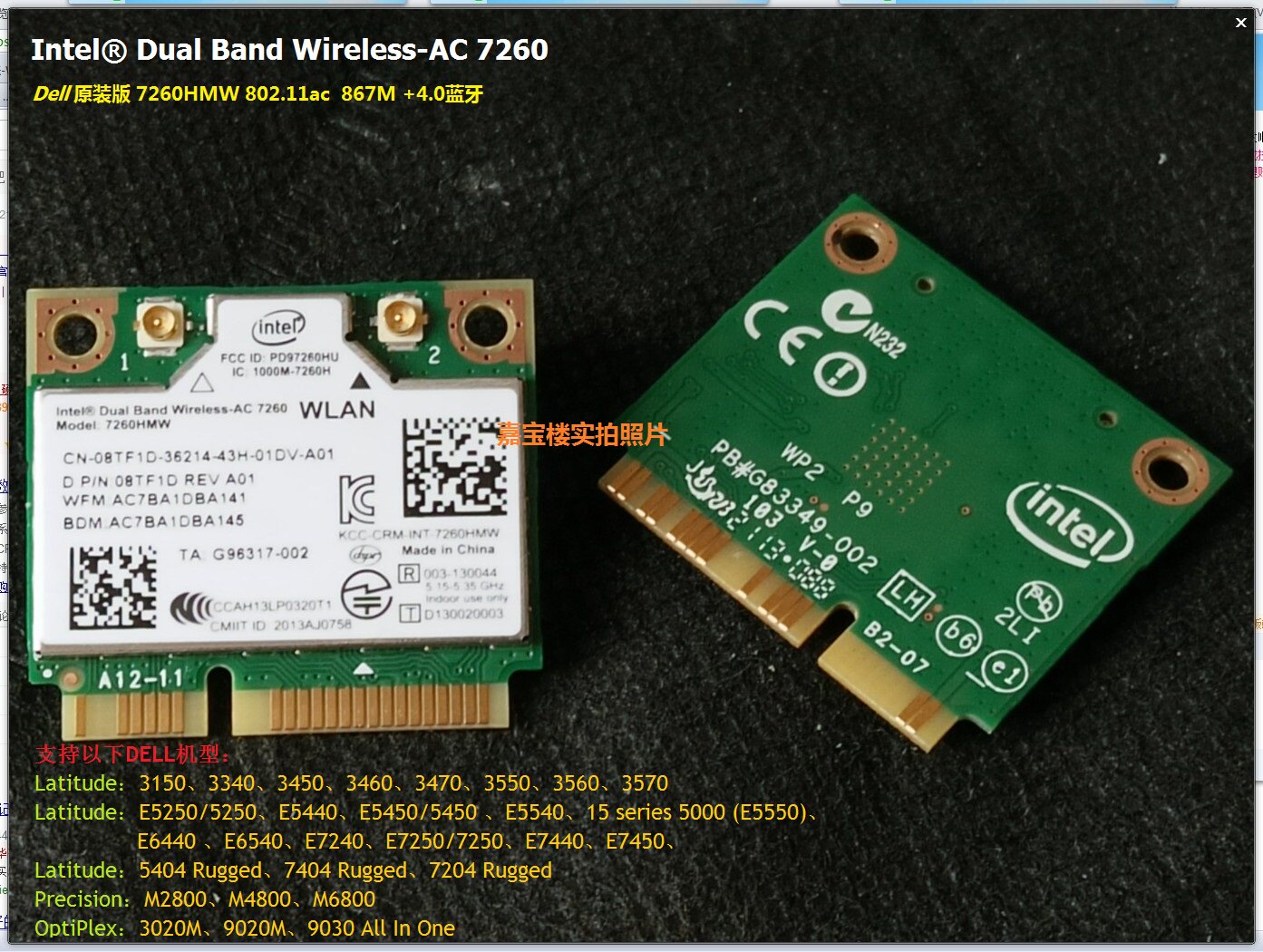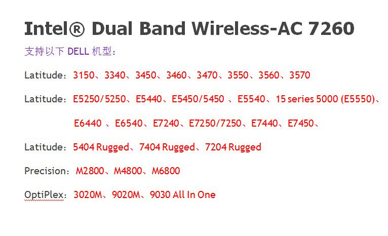 Dell AC7260 867M Двойная частота 5G беспроводная сетевая карта E5250 E5440 E5450 E5540 E5550