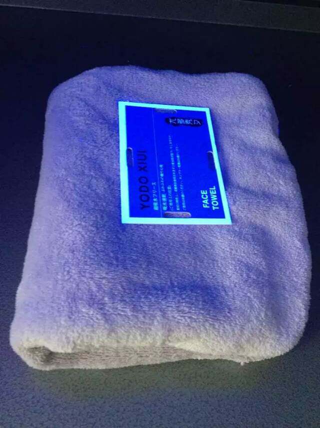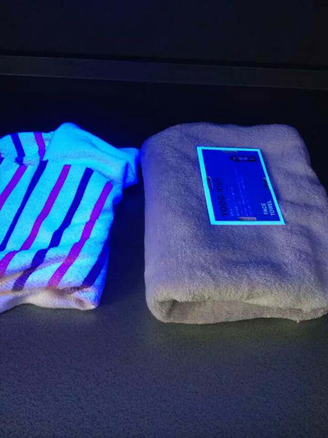 Слева полотенца, содержащие флуоресцентные агенты, а правое - полотенце без флуоресцентных агентов.(Юбка для ванны с материалом для полотенца)