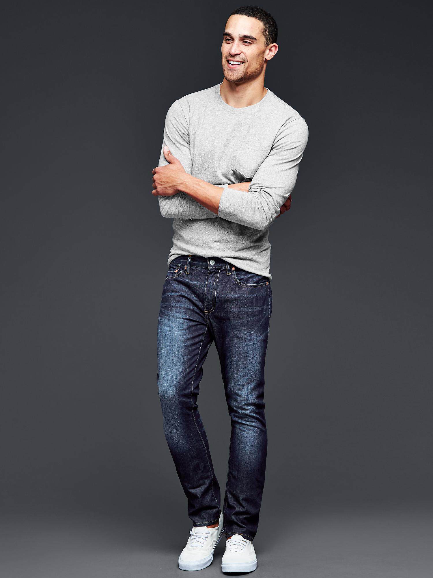 Gap Желающая узкая эластичность мужской эластичности заставляет старые джинсы глубоко 靛 голубые маленькие ноги в длинных штанах 113017