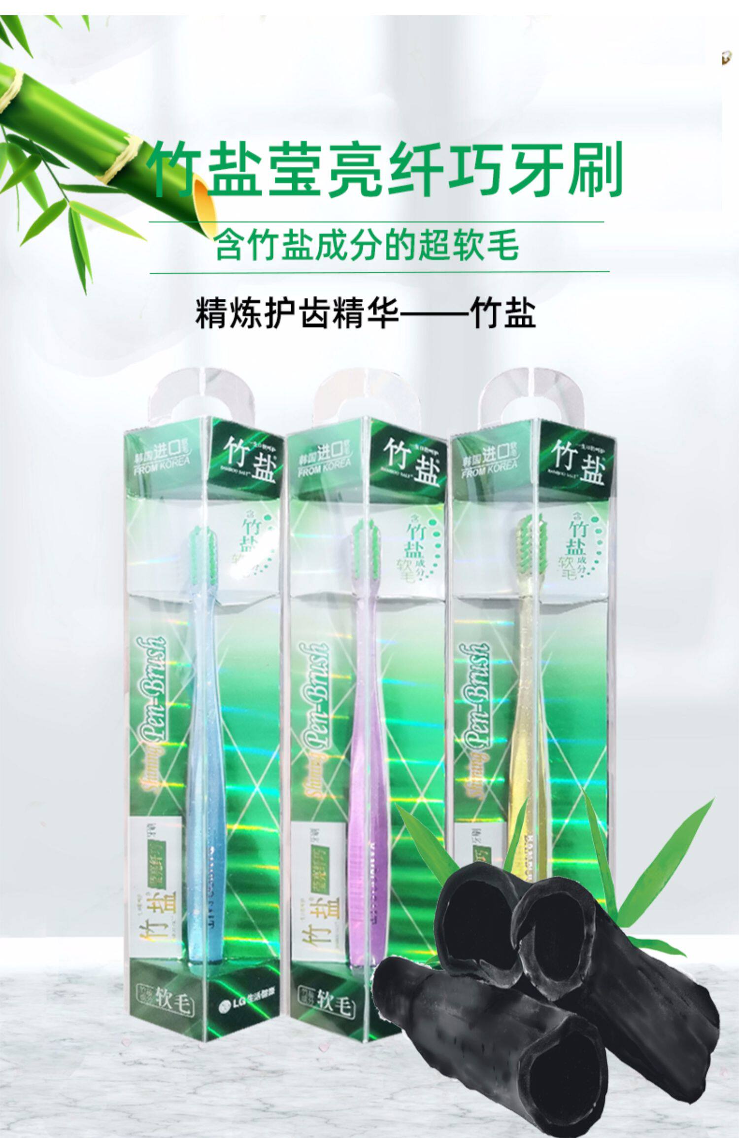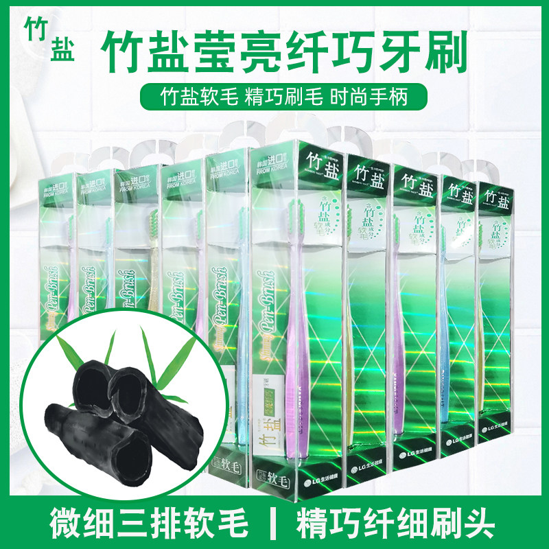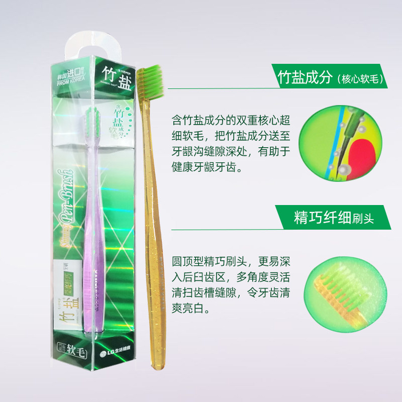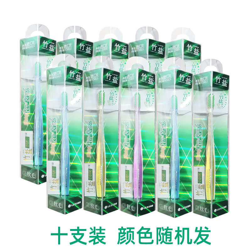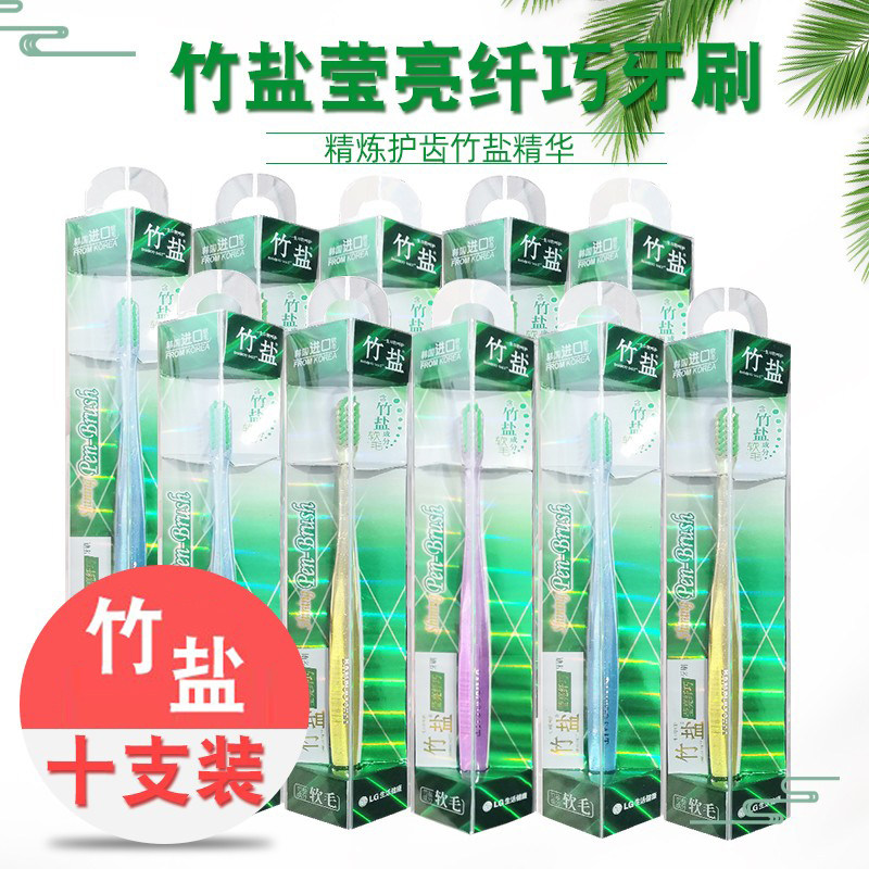LG Bamboo Salt Salt Ярко -волокно Зубная щетка 10 мягкие волосы маленькие кальциевые зубные десны за спину десен деградированные зубные пятно чистка