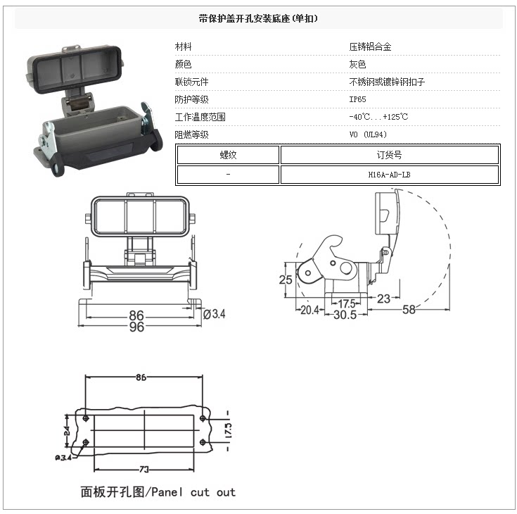 Случайный корпус разъема H16A-AD-LB Монтажную монтажную основу с защитной крышкой (одиночная пряжка)