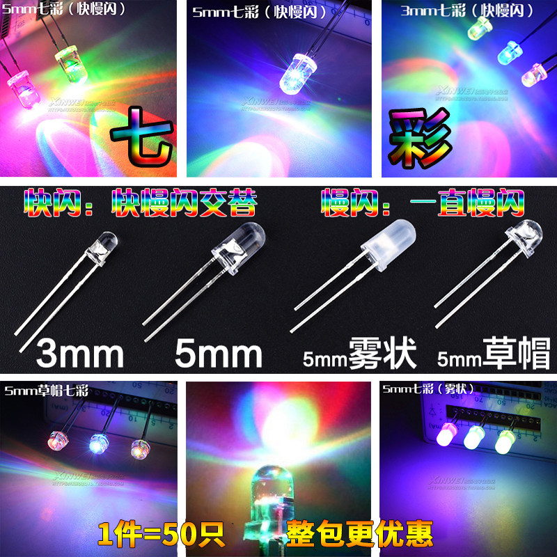 (50) 5 -миллиметровый туманно -образный красочный мигающий 3 -миллиметровый спонтанная флэш -соломенная шляпа Цвет светодиодной светодиод