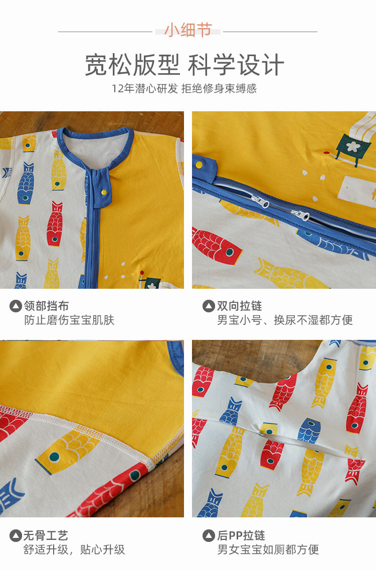 呼西贝 Детский спальный мешок весна и лето тонкий хлопок детского воздуха -кондиционированного дома Дети Спящий мешок против kick