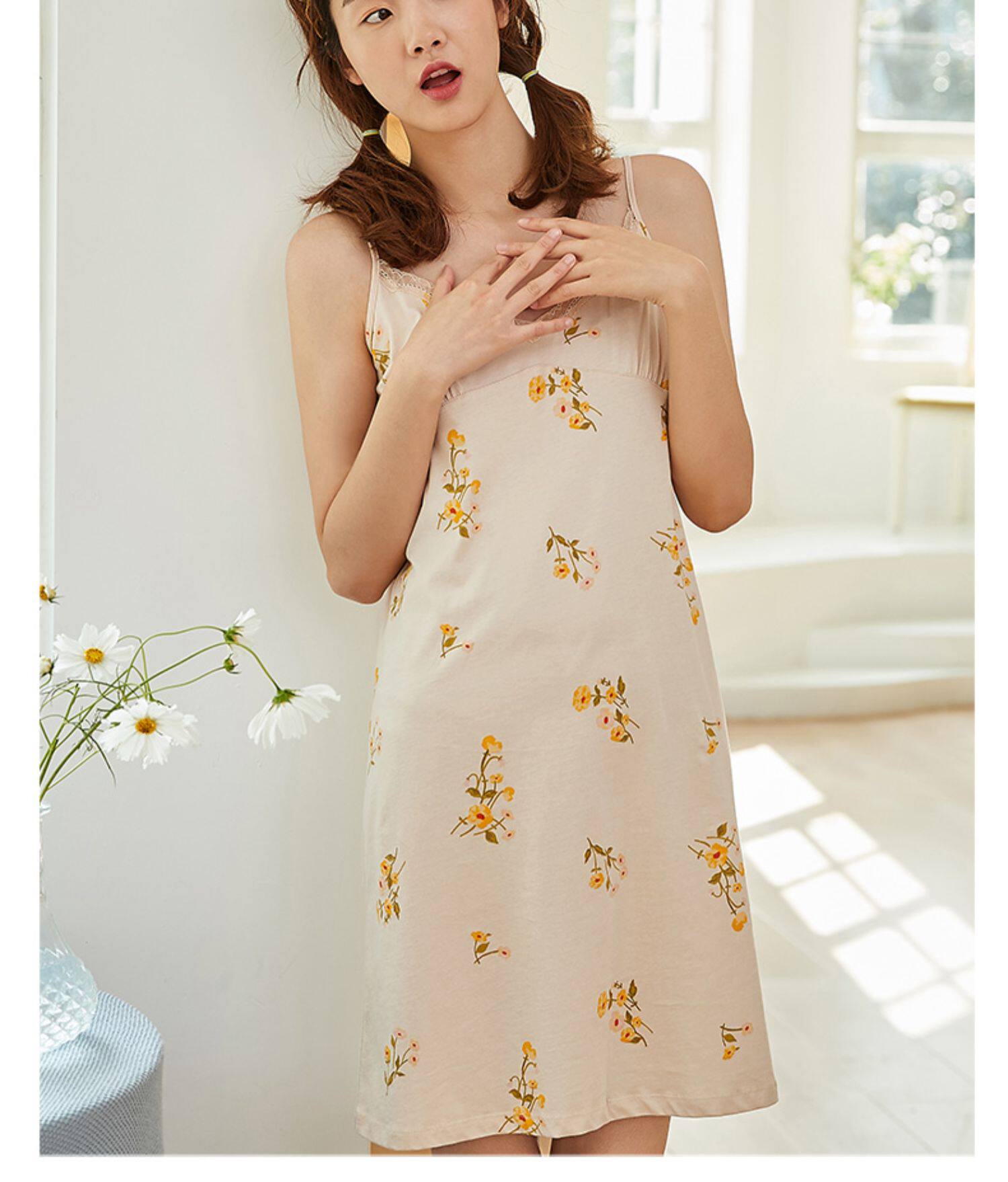 Хлопковая летняя пижама, тонкая юбка, милое хлопковое платье без рукавов, эффект подтяжки