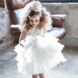 Импортное детское вечернее платье, костюм, платье девочки цветочницы, белая юбка на девочку, кружевной фартук, в корейском стиле