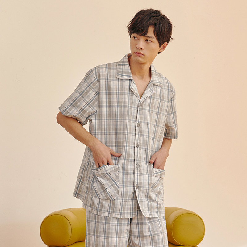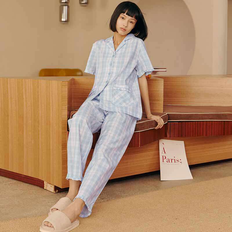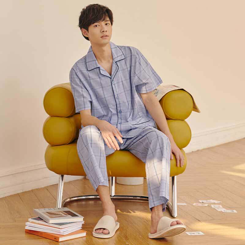 Пижама подходит для мужчин и женщин, хлопковые штаны, рубашка, комплект, короткий рукав