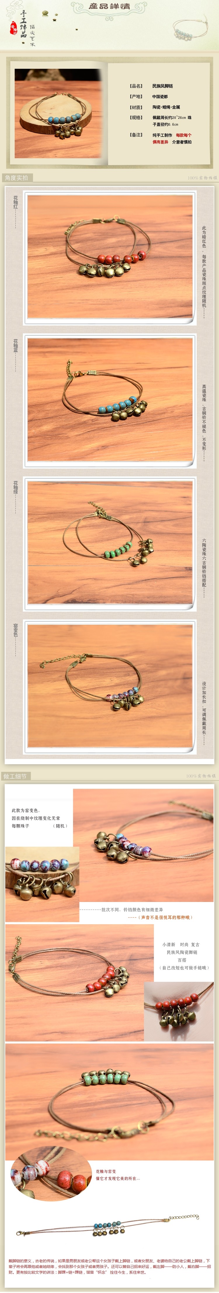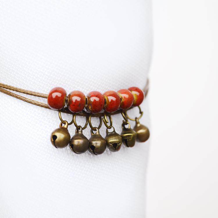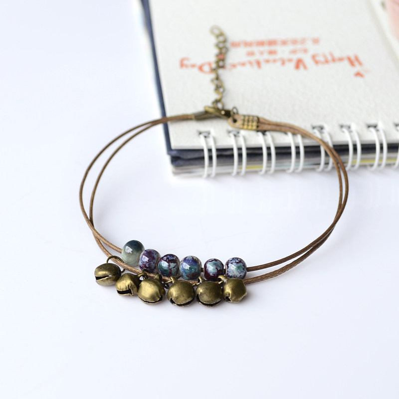 Ретро свежий этнический браслет на ногу, двухэтажный колокольчик, аксессуар, в стиле «Мори», стиль бохо, этнический стиль, простой и элегантный дизайн