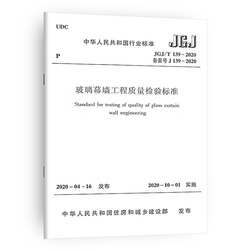 Новая версия новой версии JGJ/T 139-2020 Стандартный стандарт инспекции качества стеклянной навесной стены вместо JGJ/T 139-2001
