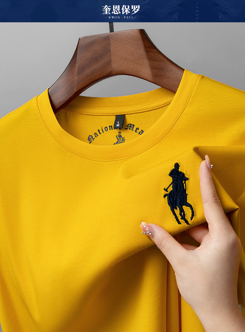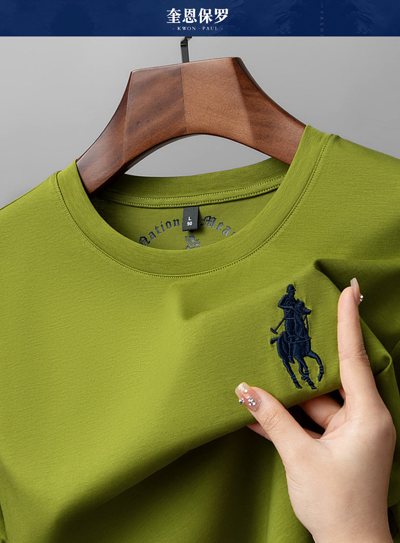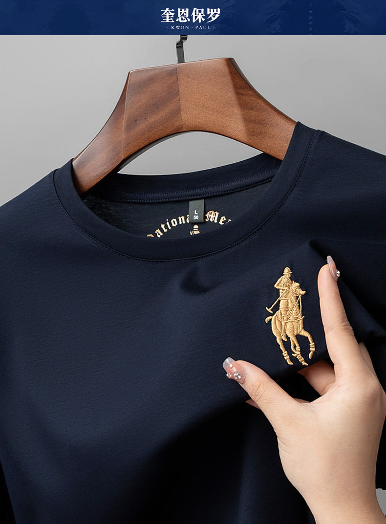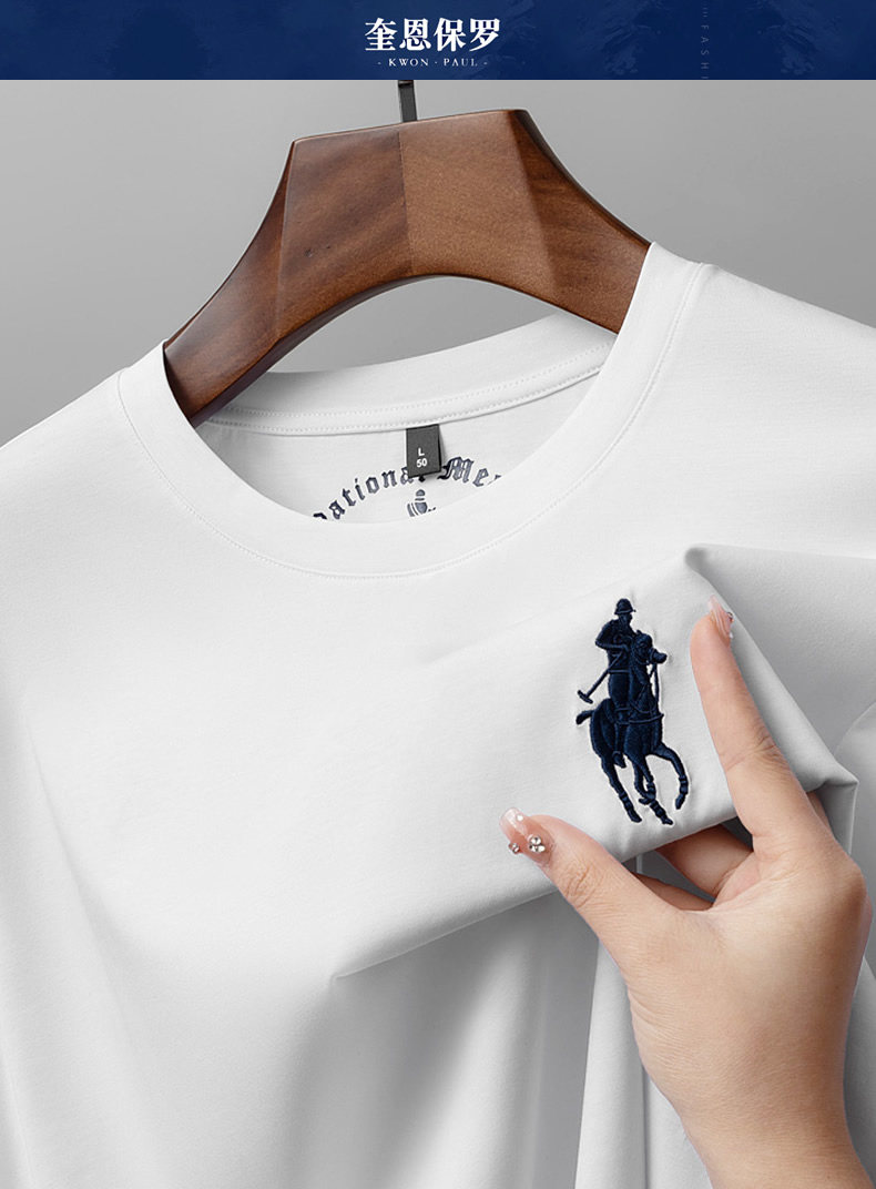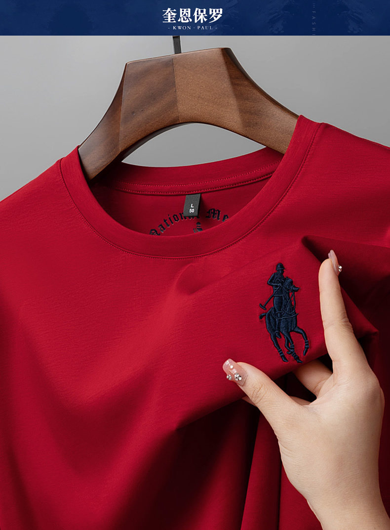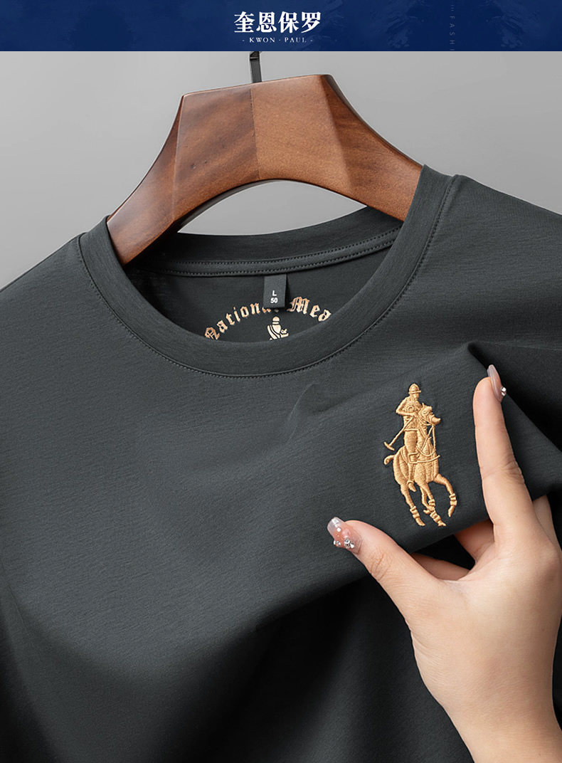 Хлопковая шелковая тонкая базовая футболка с круглым воротником для отдыха, короткий рукав, с вышивкой, оверсайз, большой размер