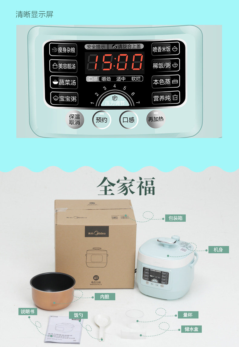 Midea Electric Plick Домохозяйство 2,5 л Smart Small Electric Hightra -Plork Automatic Rice Plork 3 Специальное предложение 2 человека 25A1