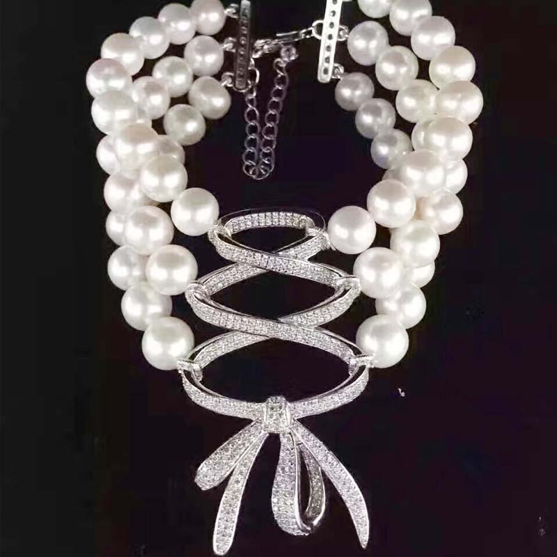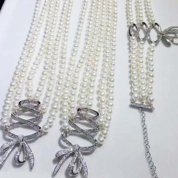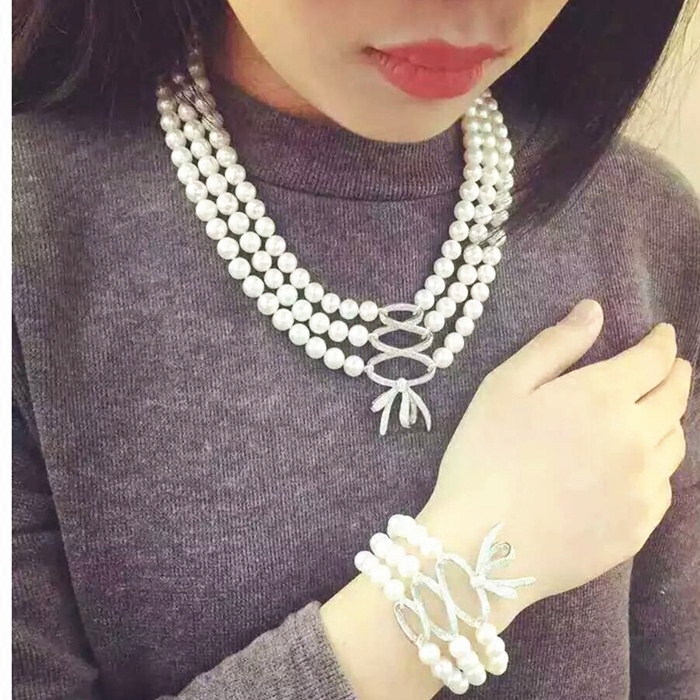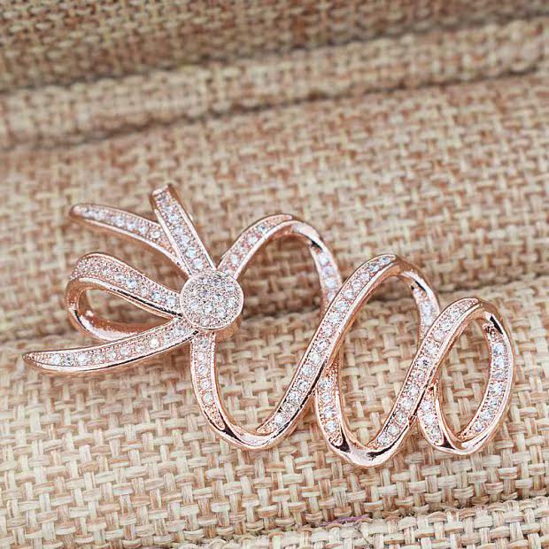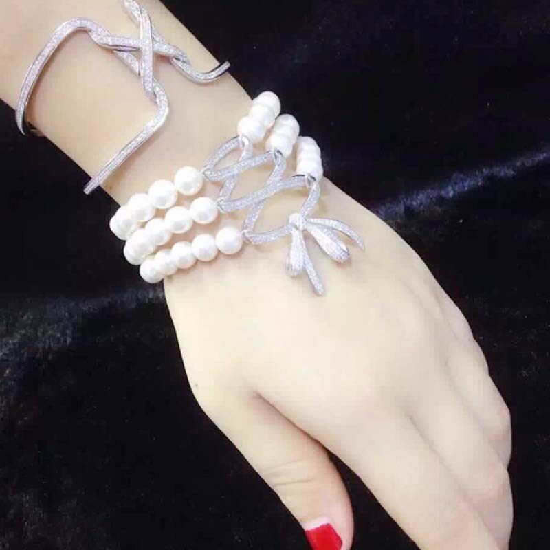 Аксессуары с бантиком с цирконом, браслет, ожерелье, свитер, серебро 925 пробы