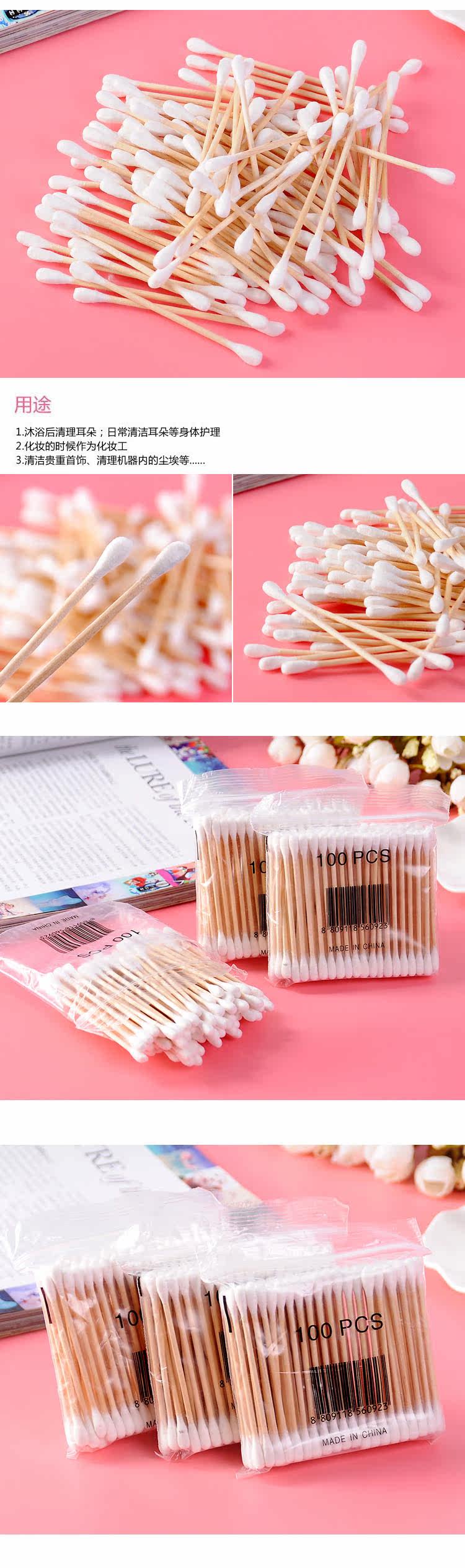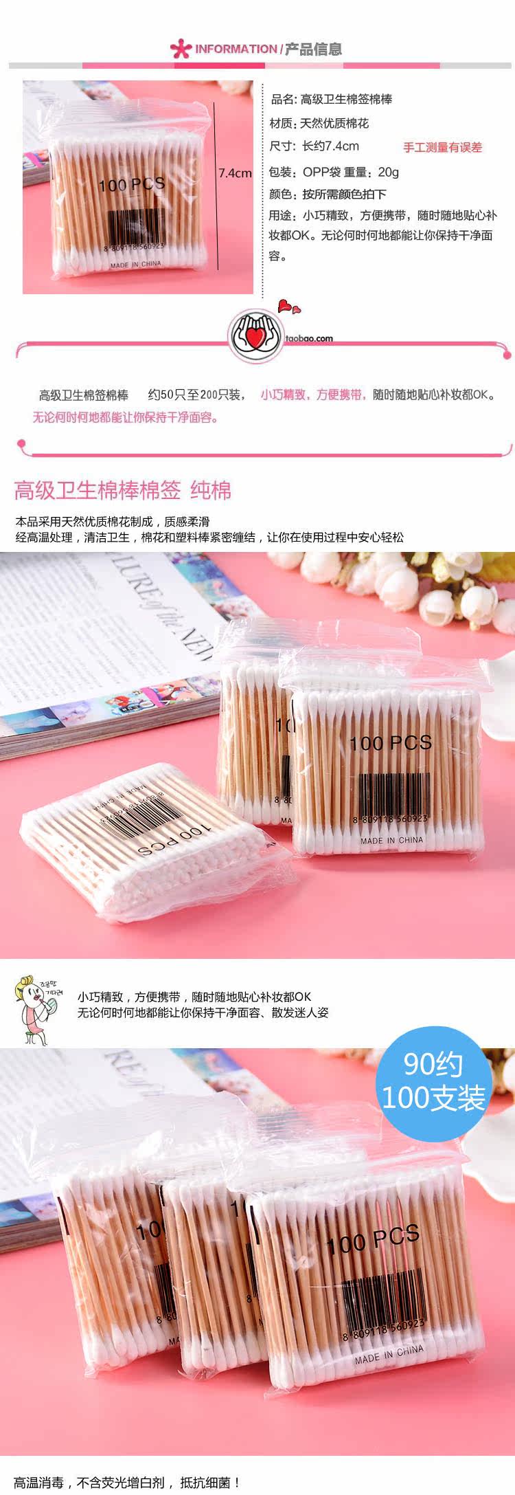 Ватные палочки, хлопковые шарики, косметические хлопковые ватные диски, 100 шт