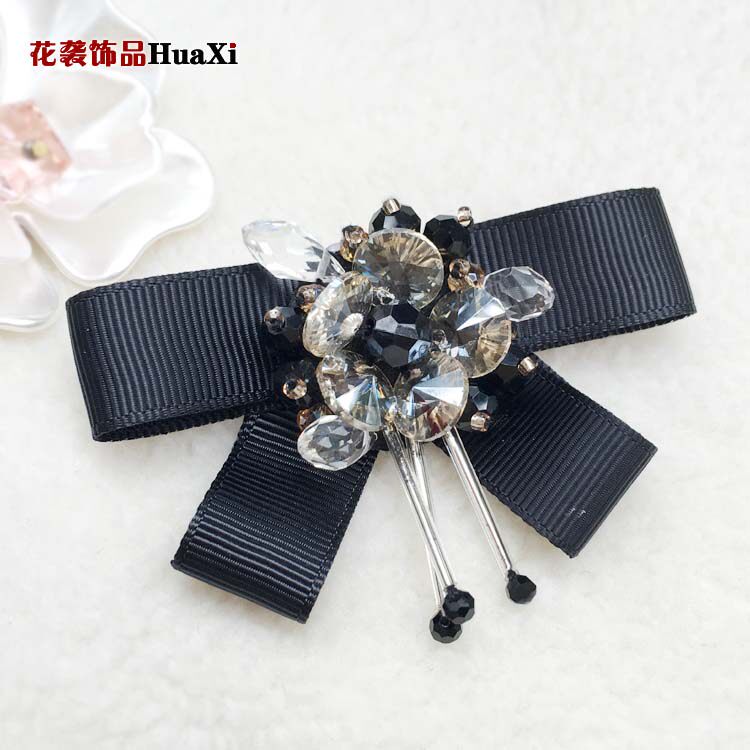 Модная черная лента с бантиком на лацкан, брошь, аксессуар, браслет из бисера ручной работы, в цветочек